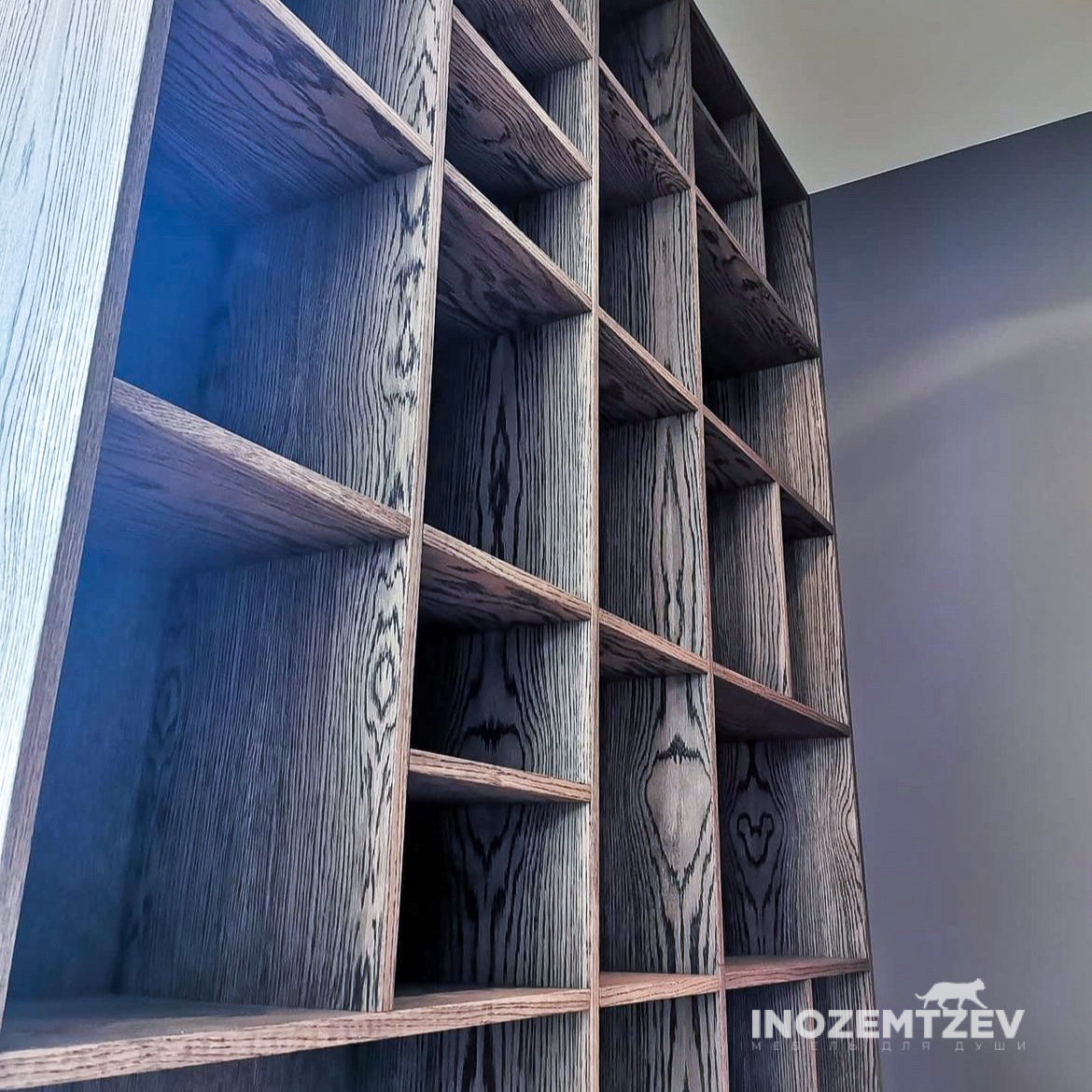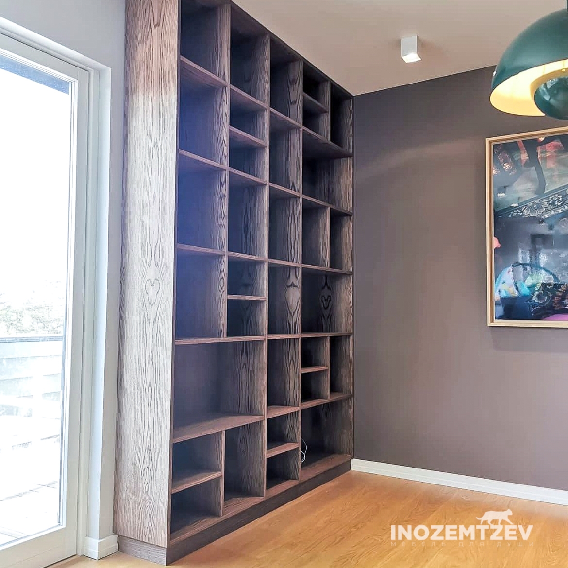 Стеллаж от пола до потолка с открытыми полками для книг из текстурного ЛДСП Egger