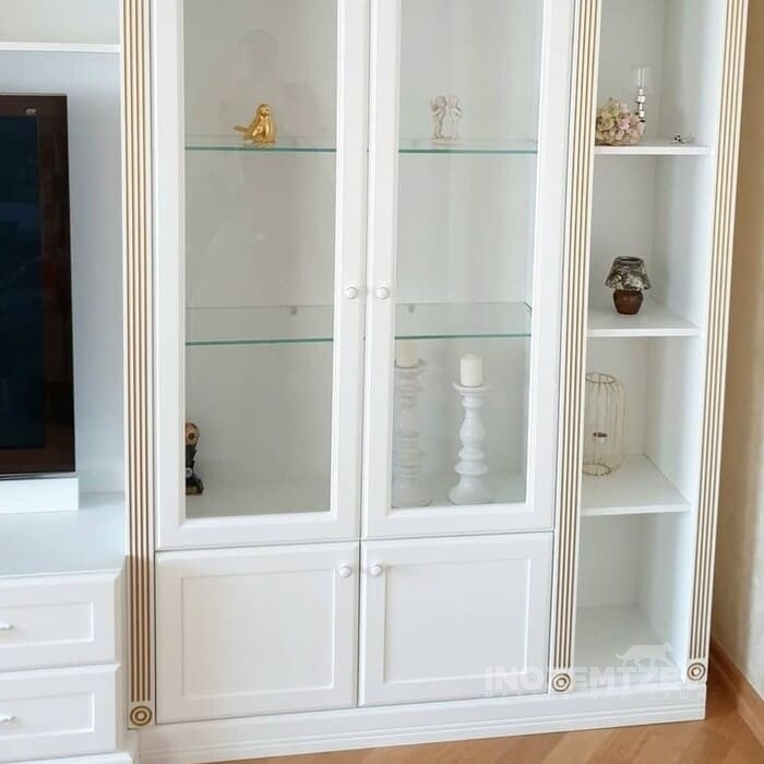 Шкаф для посуды и книг со стеклянными дверцами в классическом стиле