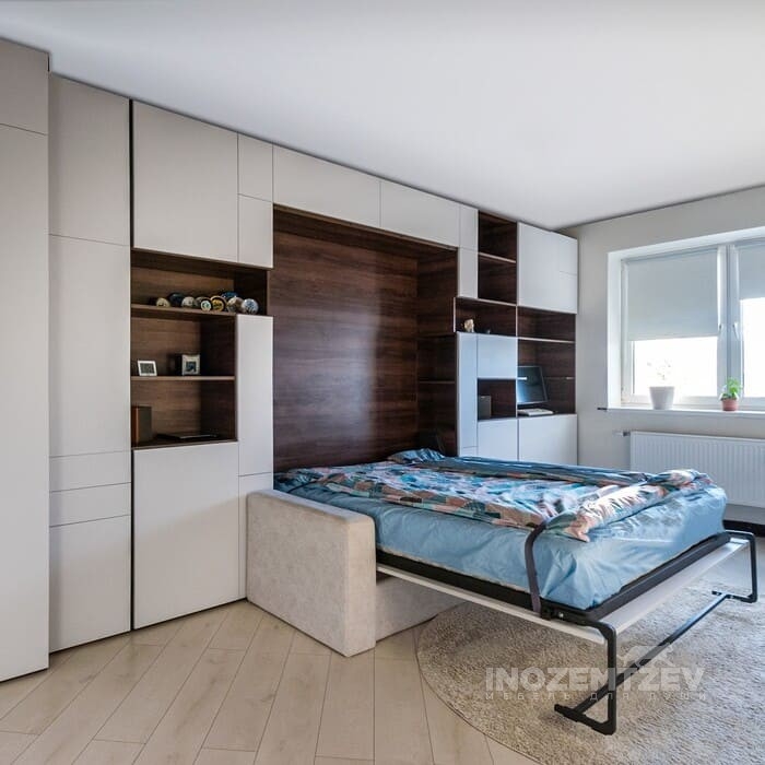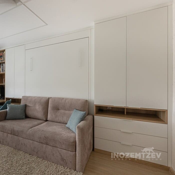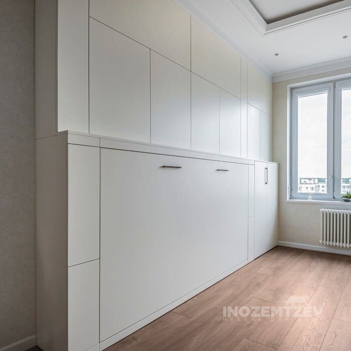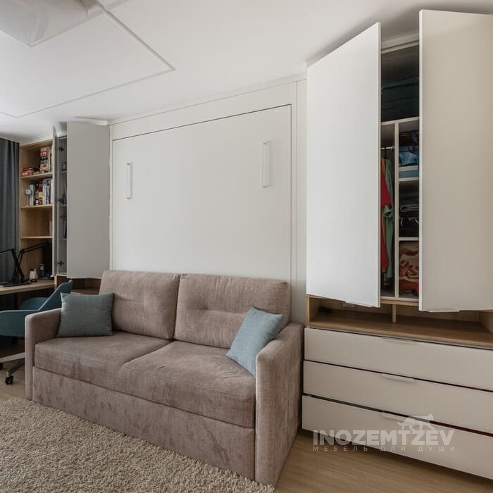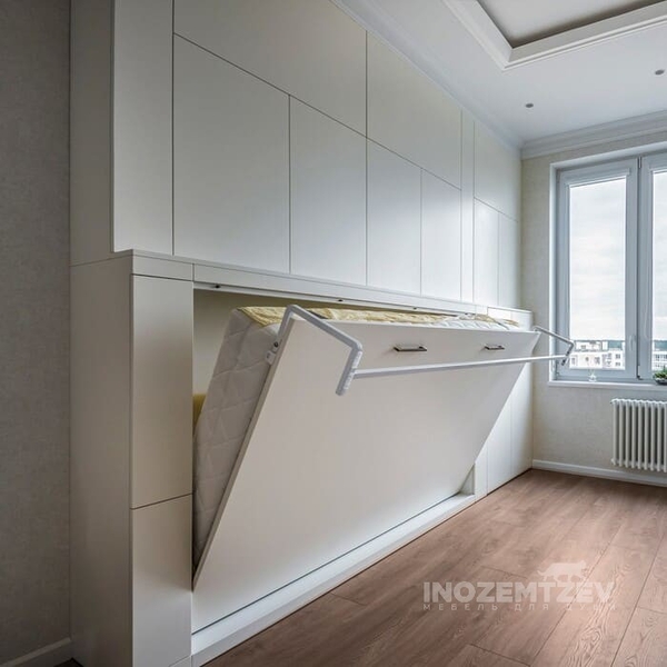Кровать трансформер для квартиры с дополнительными нишами для хранения вещей