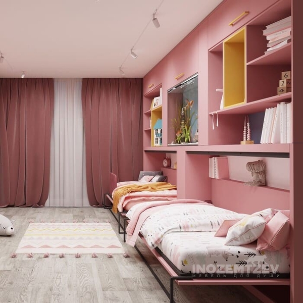Кровать трансформер детская для двоих.В центре встроен аквариум с рыбками. Шкафчик над ним открывается, благодаря чему появляется свободный доступ для ухода.