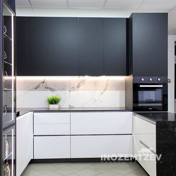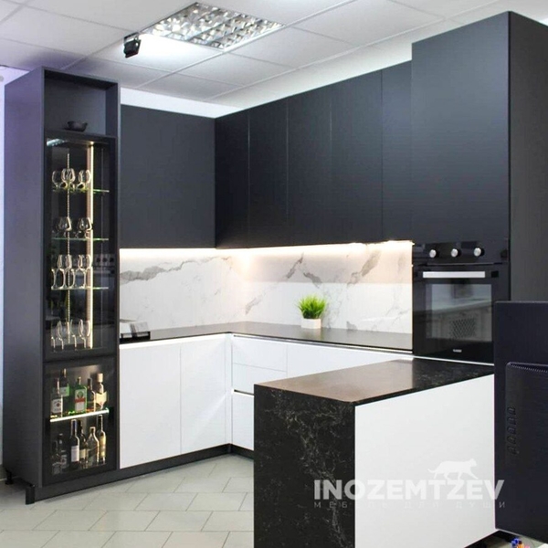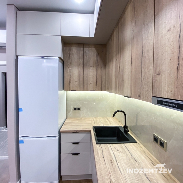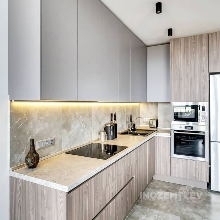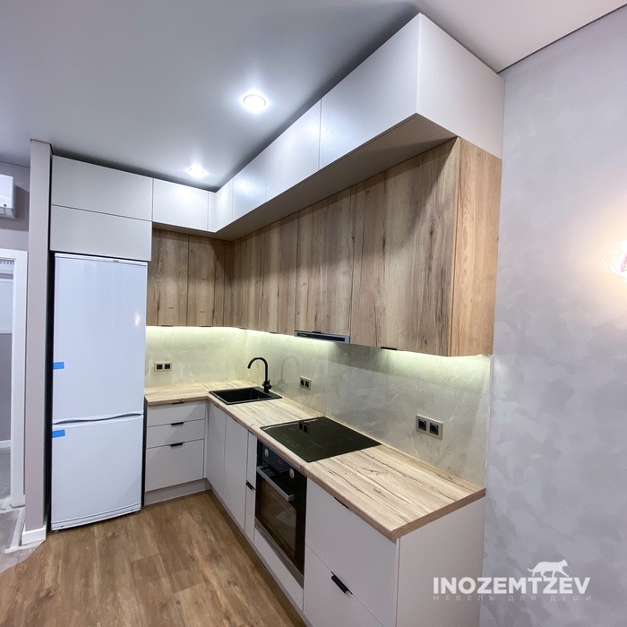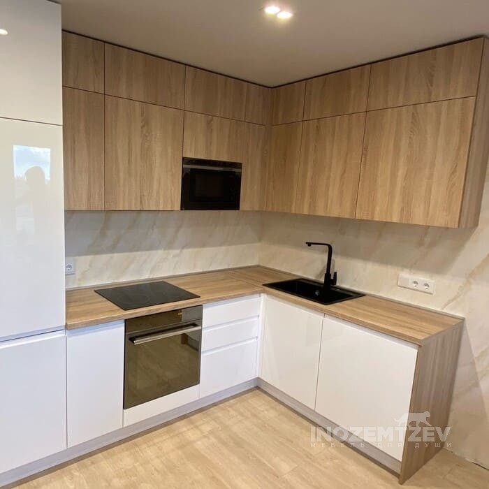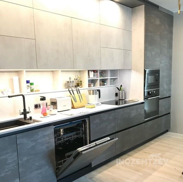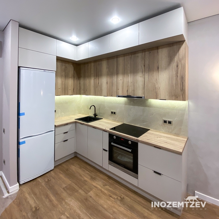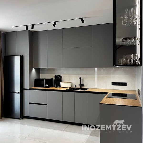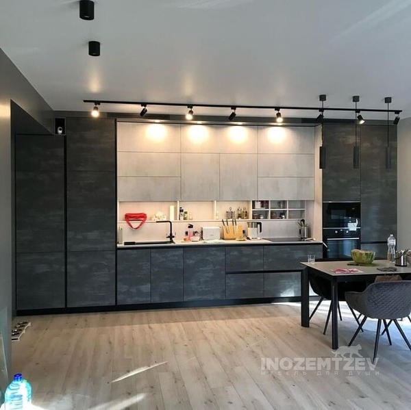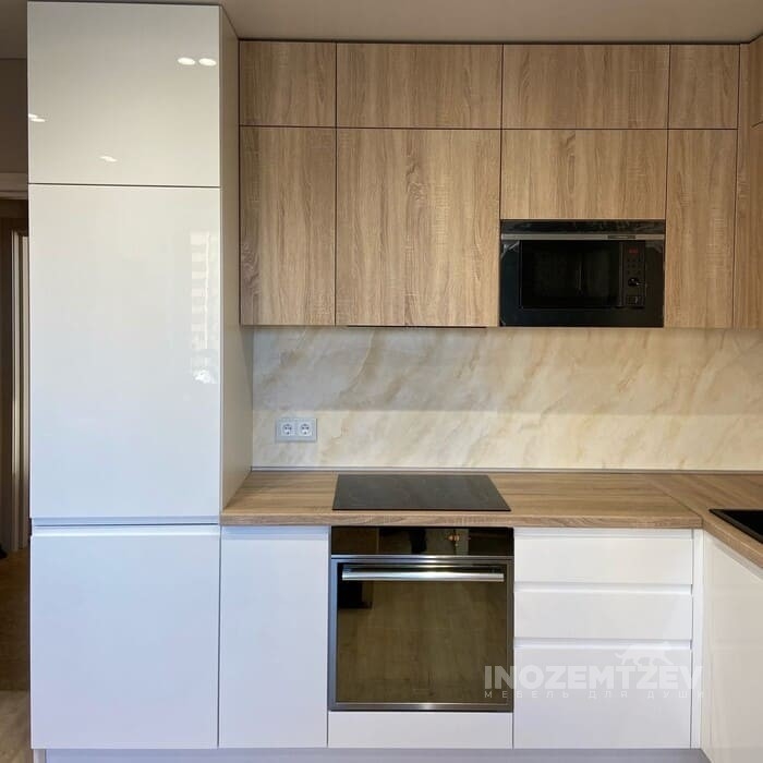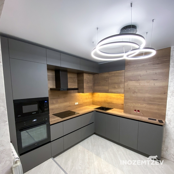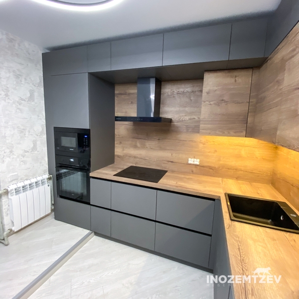 Кухня из текстурного ЛДСП Egger и МДФ с глянцевой поверхностью