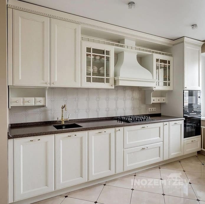 Прямая кухня из массива с балюстрадой и витражами