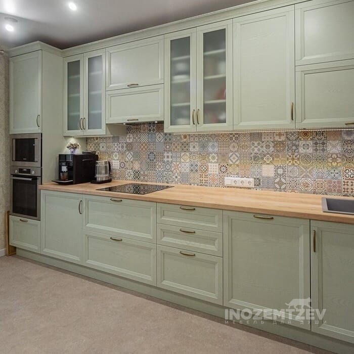 Элегантные кухни из массива дерева вне моды и изменчивых тенденций, они олицетворяют настоящий домашний уют, тепло, высокий статус владельцев. Дерево по-прежнему считается самым долговечным, экологичным и удобным материалом для красивого и функционального обустройства жилья. Дизайнеры украшают выполненные на заказ кухни из разных пород дерева искусной резьбой, инкрустацией, зеркальными и стеклянными вставками, оригинальной фурнитурой, окрашивают фасады в любые оттенки, патинируют.Для классических направлений дизайна в отделке гарнитуров характерны резные элементы, росписи, винтажные декоративные детали, патина. В отличие от прованса и кантри, современные стили лофт, скандинавский, эко тяготеют к нарочито грубому, необработанному виду древесины с минимумом отделки. Такие кухни, воссоздающие исходную фактуру массива, декорируют на заказ вставками из металла и стекла, коваными, плетеными элементами.
