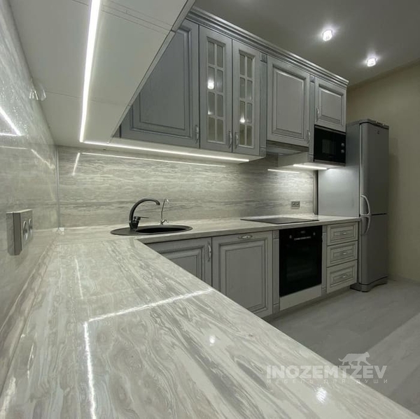 Мебель для кухни из массива и столешницей из искусственного камня