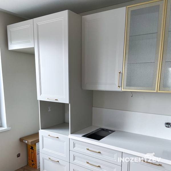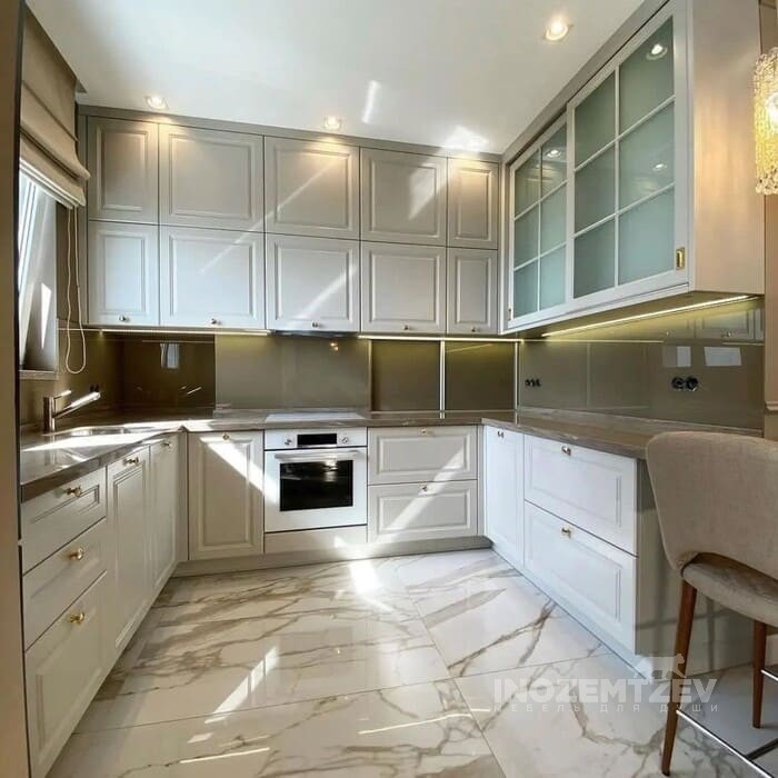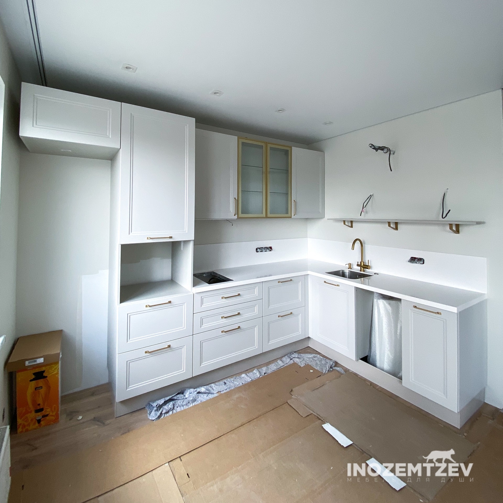 Кухня в стиле неоклассика по ул. Прокшинский проспект. Фасады выполнены из МДФ