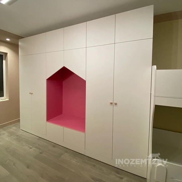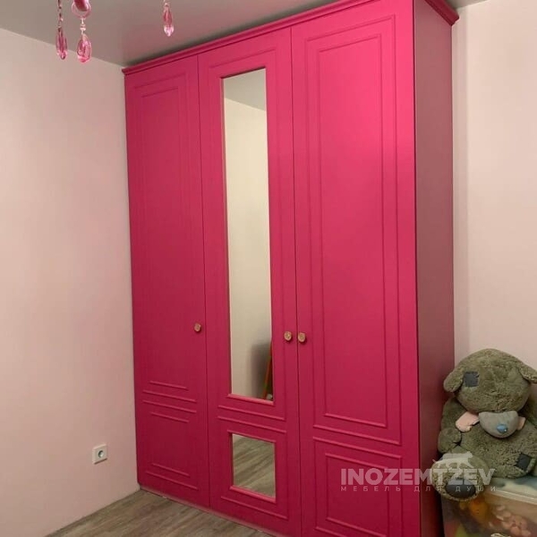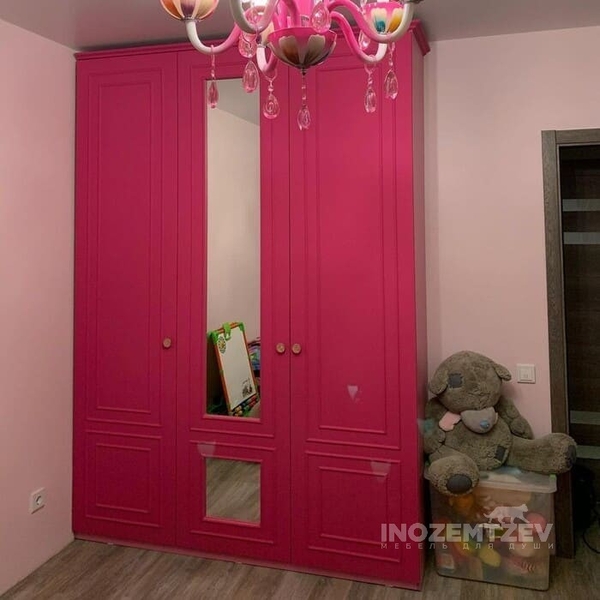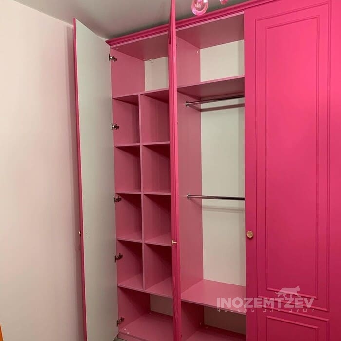 Детский шкаф для девочки в розовом цвете