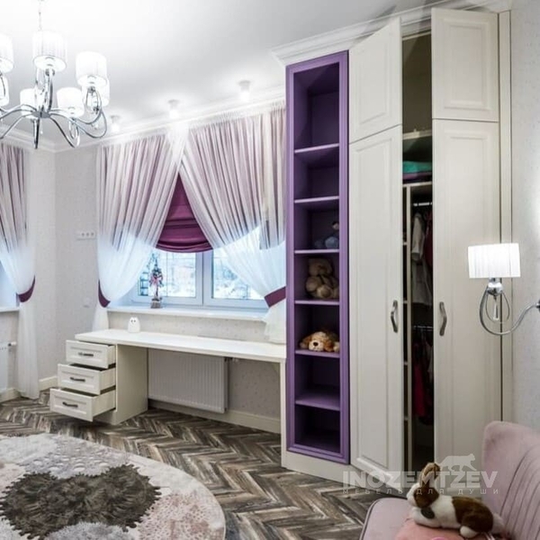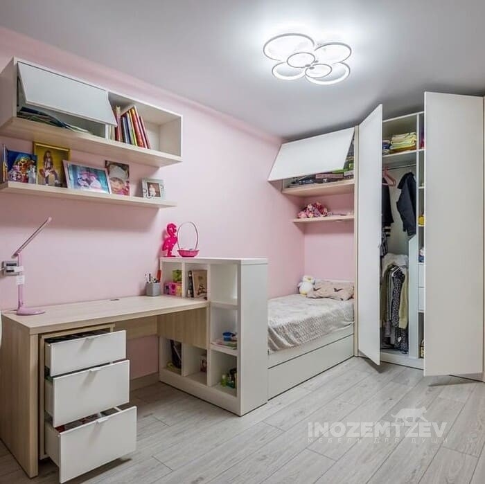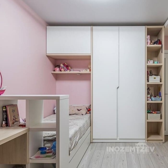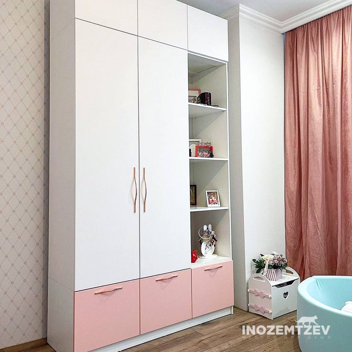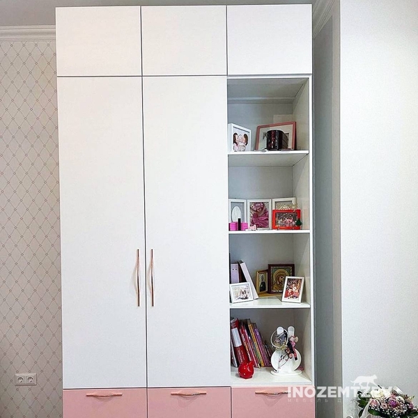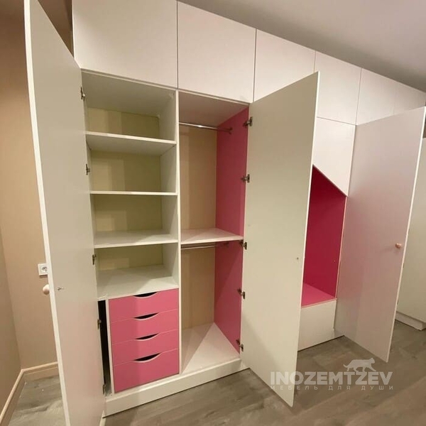 Функциональный шкаф для девочки в комнату для одежды, книг и игрушек