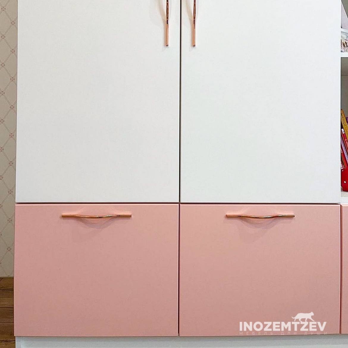 Шкаф в комнату для девочки в сочетании белого и розового цветов