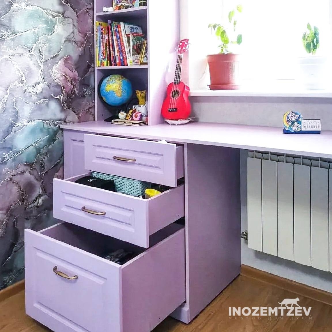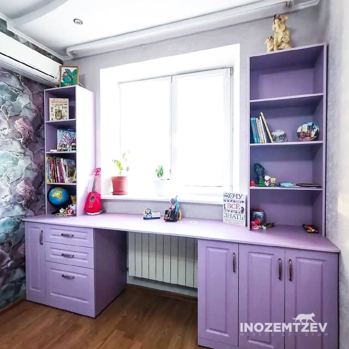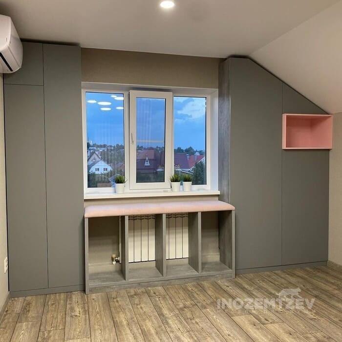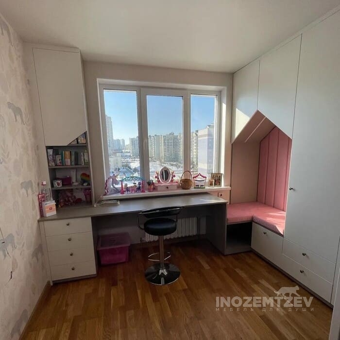 Современная подростковая мебель для девочки вокруг окна