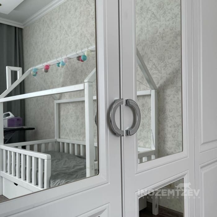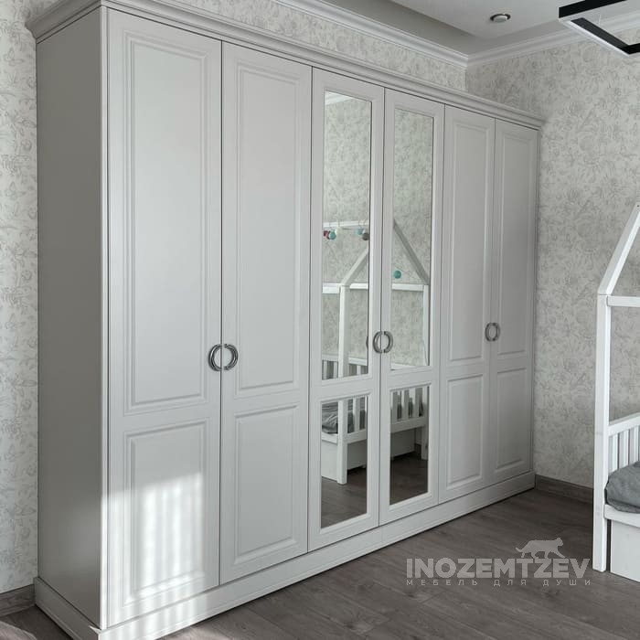 Классический шкаф в детскую комнату с распашными дверями и зеркалом