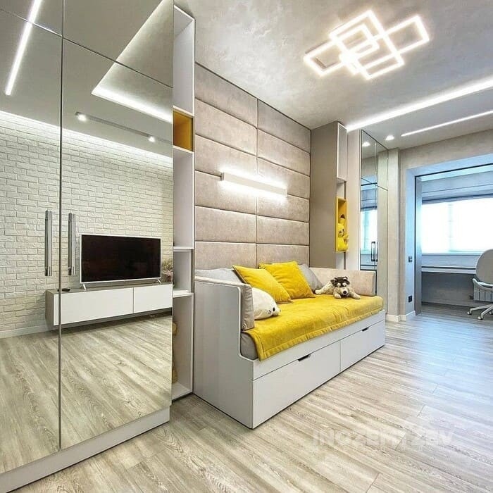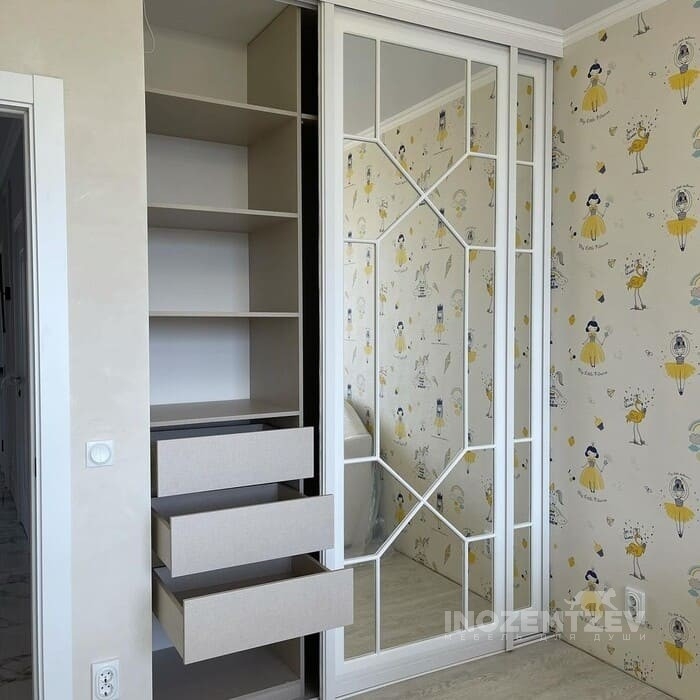 Шкаф купе для девочки с раскладкой на зеркале