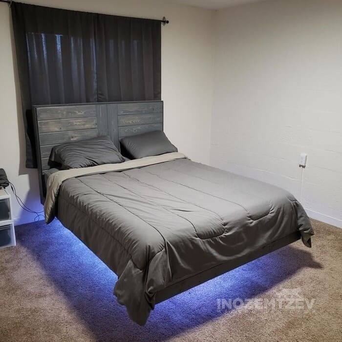 Парящая кровать - это кровать, которая визуально висит в воздухе, но мы-то с Вами знаем, что это обманчиво. Небольшая хитрость в том, что опора расположена таким способом, что ее возможно увидеть только если заглянуть под низ или отойти на дальнее расстояние. Левитирующие кровати в настоящее время очень популярны, они придают изюминку Вашей спальне и постоянно удивляют гостей своей эффектностью и необычностью.