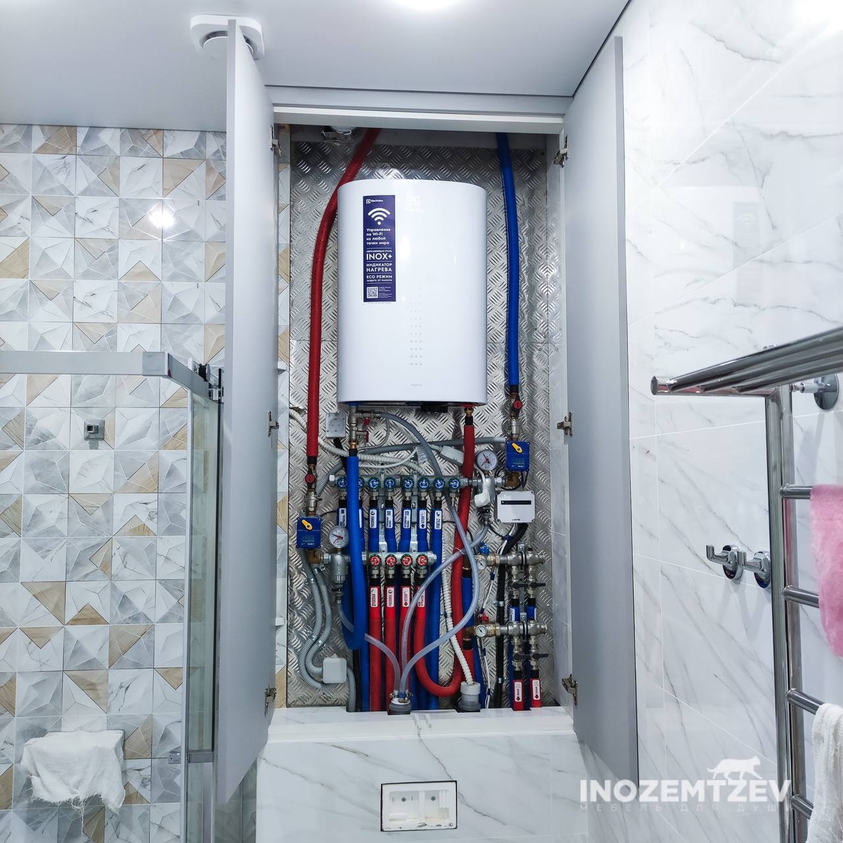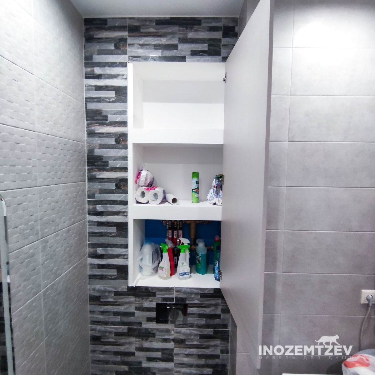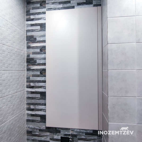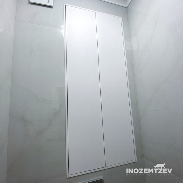 Сантехнические дверцы с боковыми полочками над инсталляцией из МДФ эмали