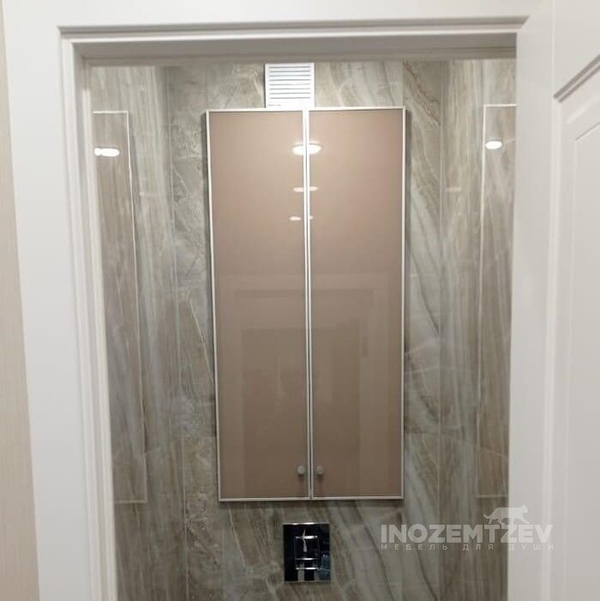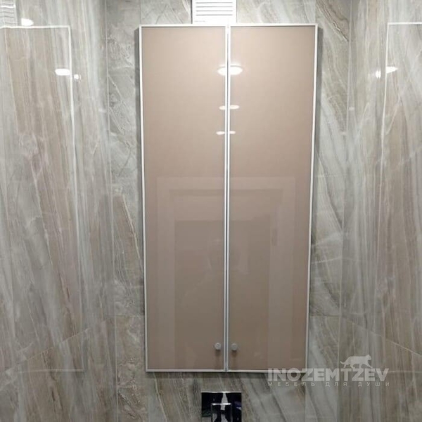 Двери за унитазом с ручками кнопками Матовый хром, изготовленные из материала: крашеное стекло в алюминиевой рамке