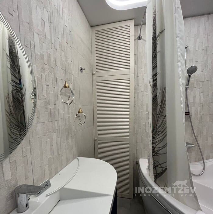 Дверки для шкафа, изготовленные из стекла Lacobel 9010 с системой открывания push-to-open и второй шкафчик со складными дверями (книжка)