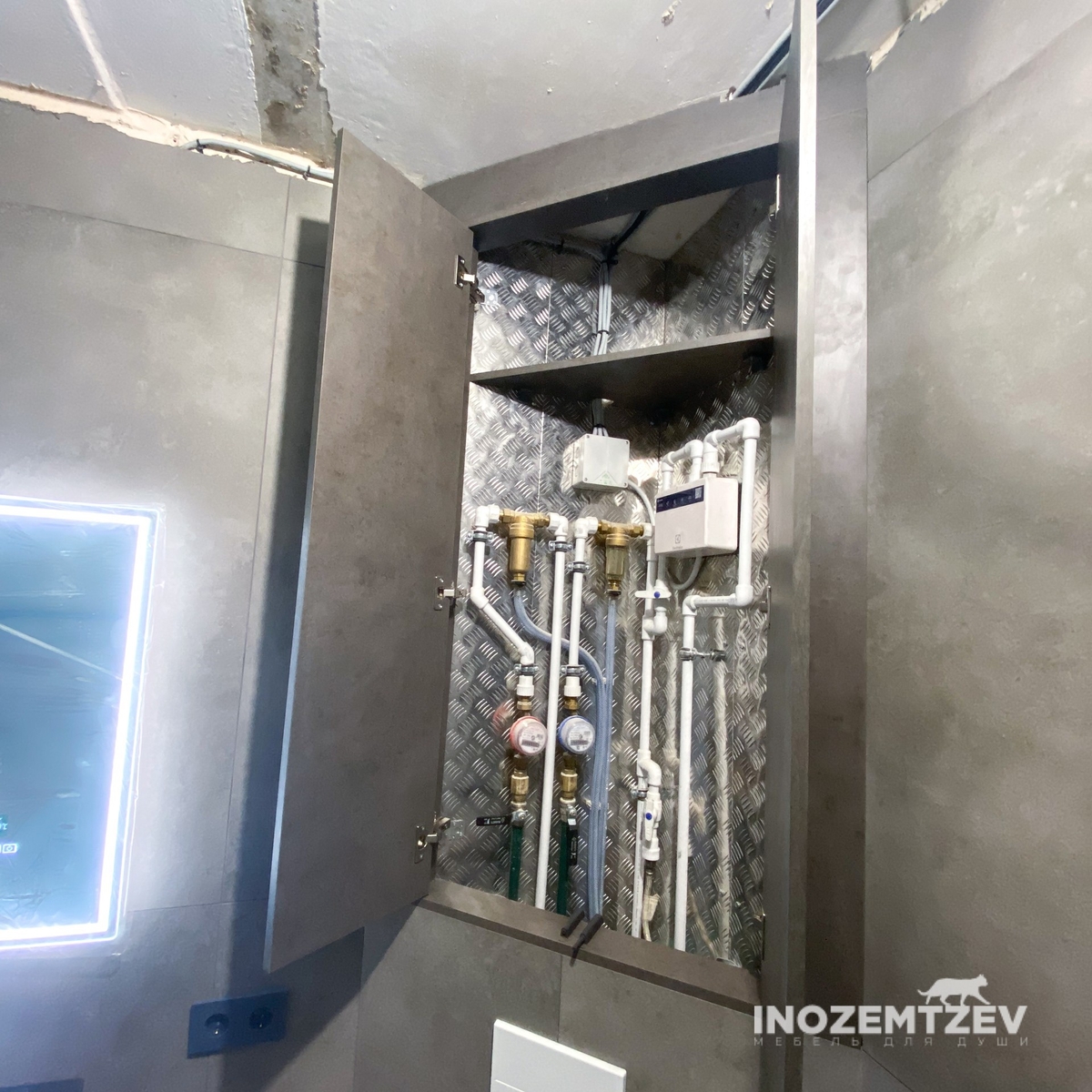Шкаф ревизионный на заказ с полками и откидной задней стенкой