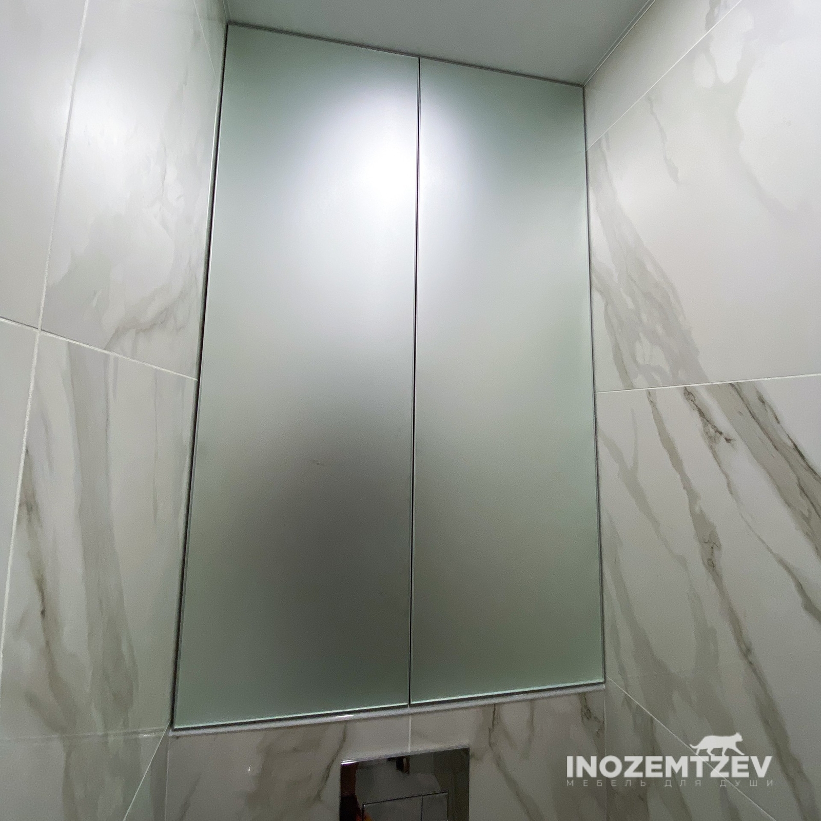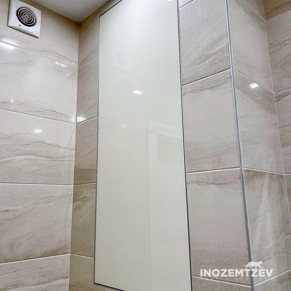 Сантехнические дверцы в туалет: алюминиевый профиль со стеклом сатин, корпус выполнен из ЛДСП Egger Белый влагостойкий, система открывания push-to-open