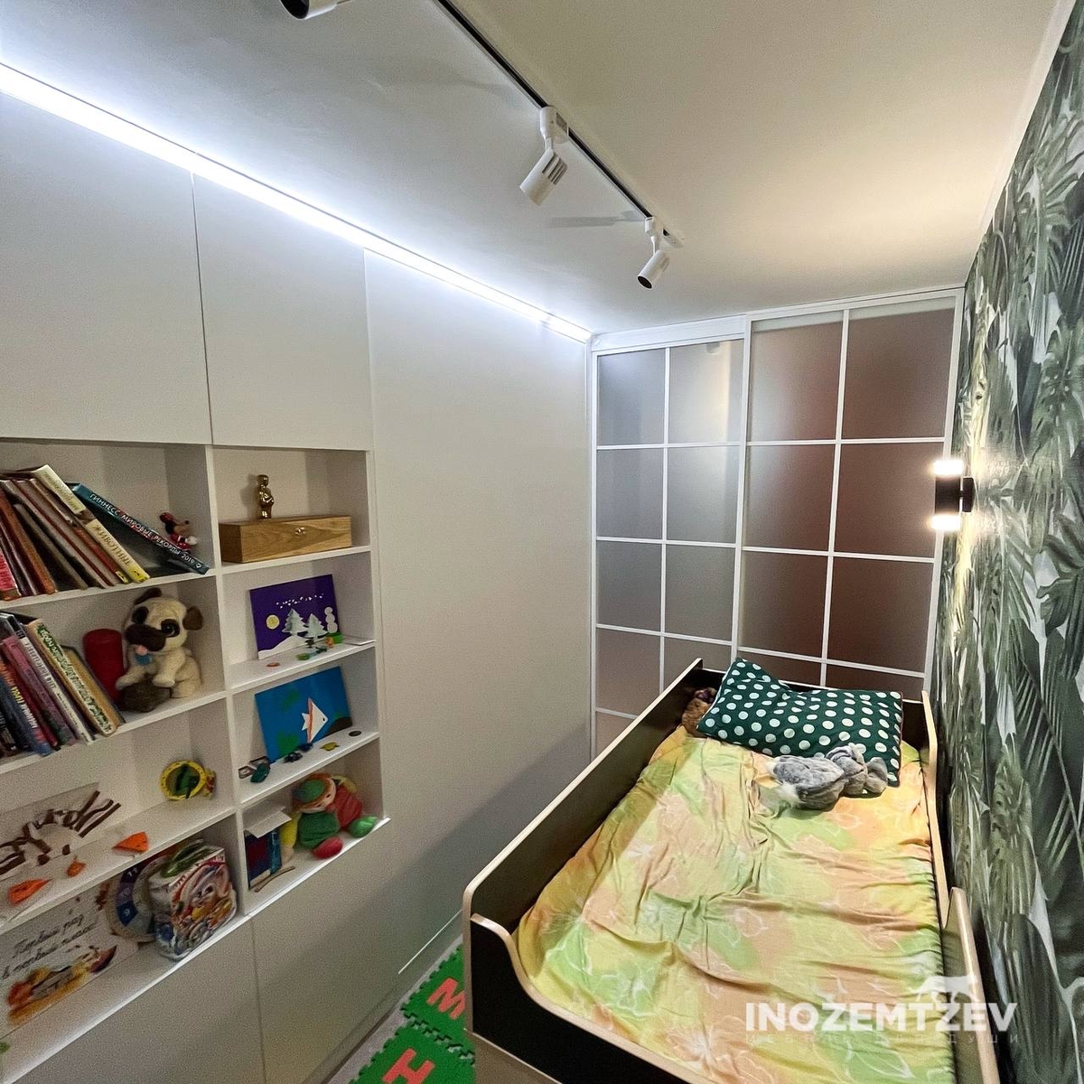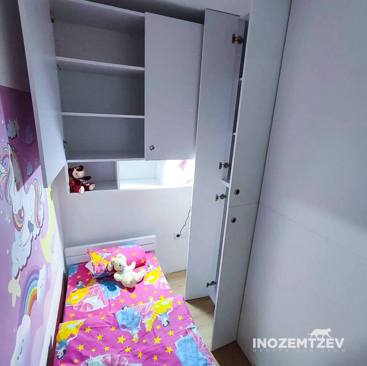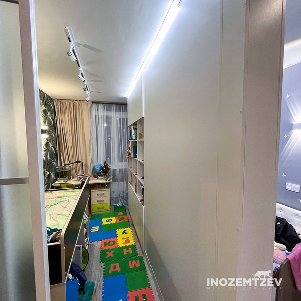 Раздвижная перегородка на два проема и шкаф перегородка с креплением к потолку в детскую комнату для мальчика и девочки