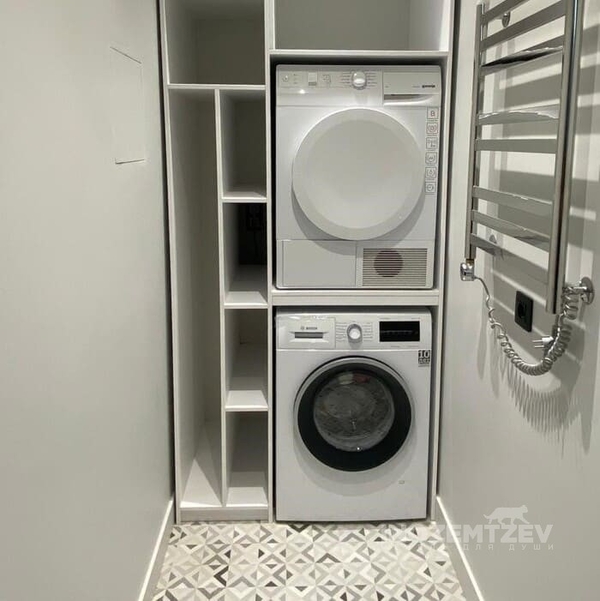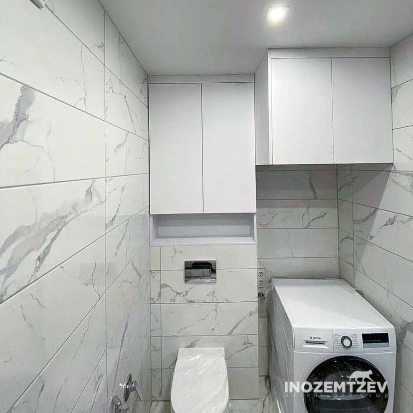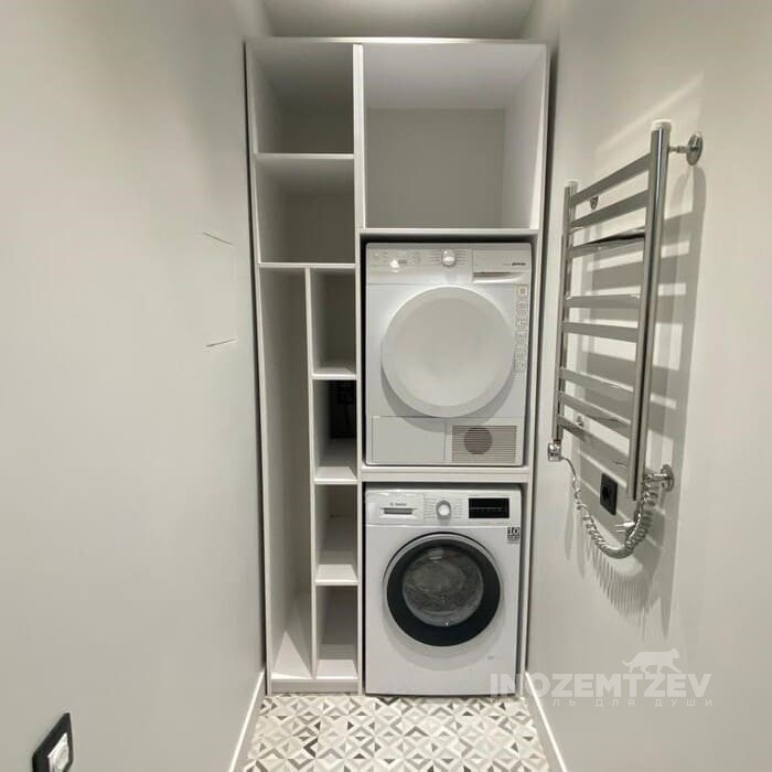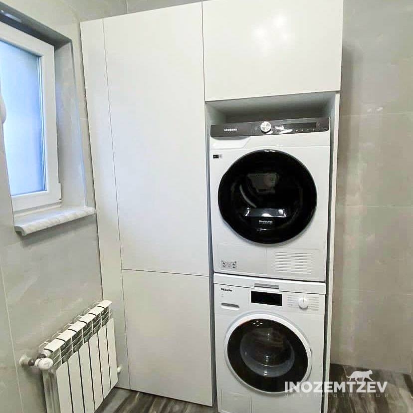 Шкаф для сушильной и стиральной машины в ванную комнату в белом цвете из ЛДСП Egger