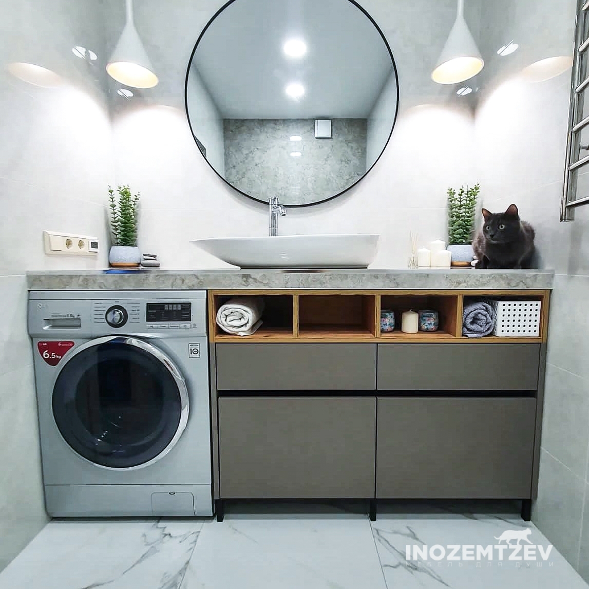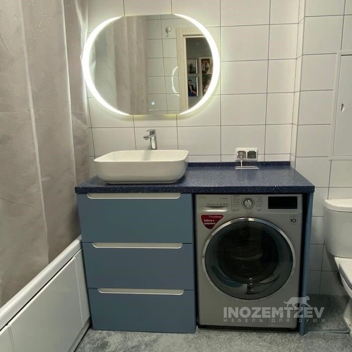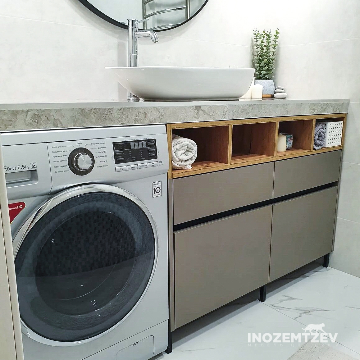 Напольная тумба под стиральную машину со столешницей из искусственного камня