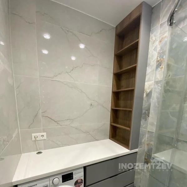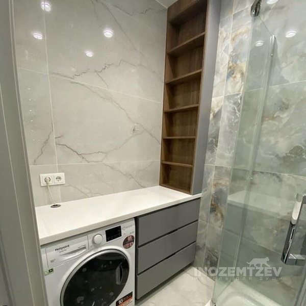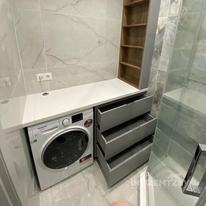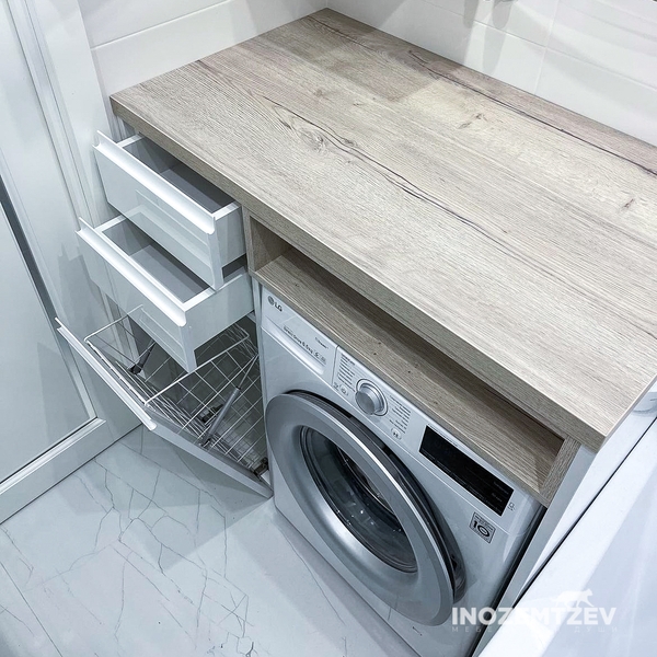 Тумба со столешницей под стиральную машинку и стеллаж с открытыми полками