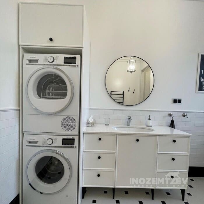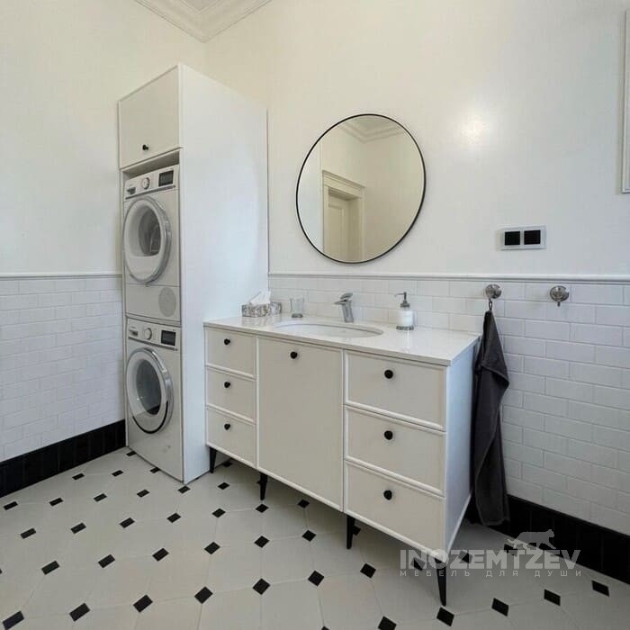 Пенал для стиральной и сушильной машины и тумба с интегрированной мойкой из искусственного камня