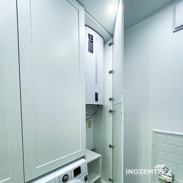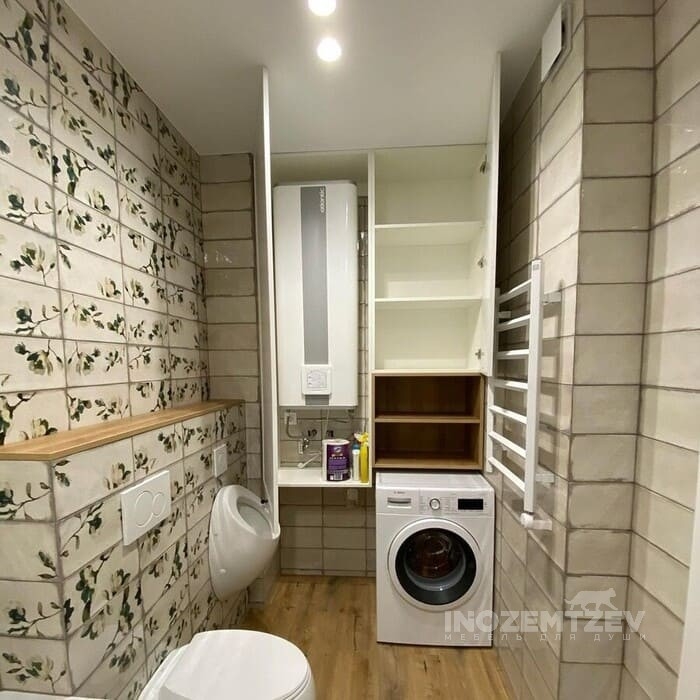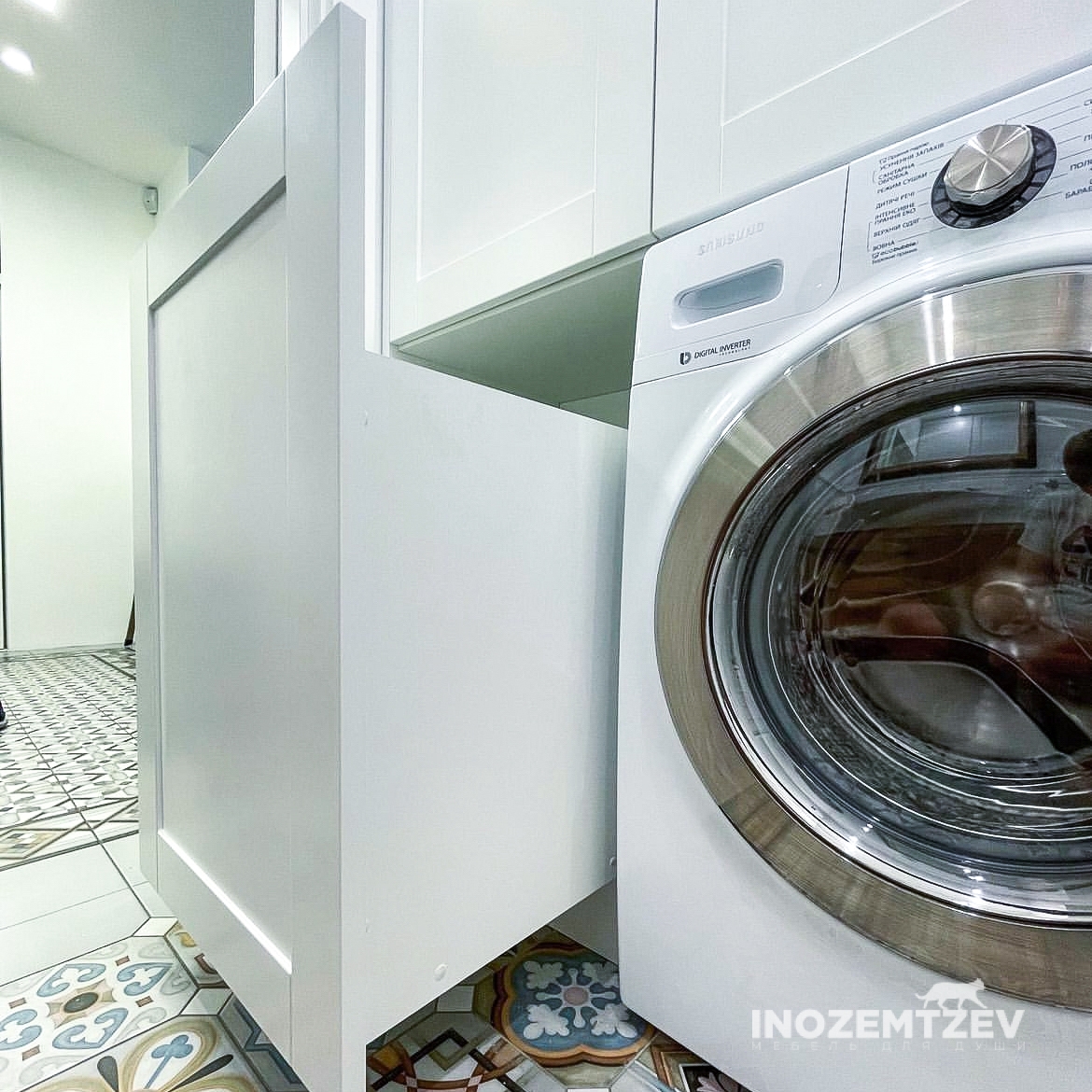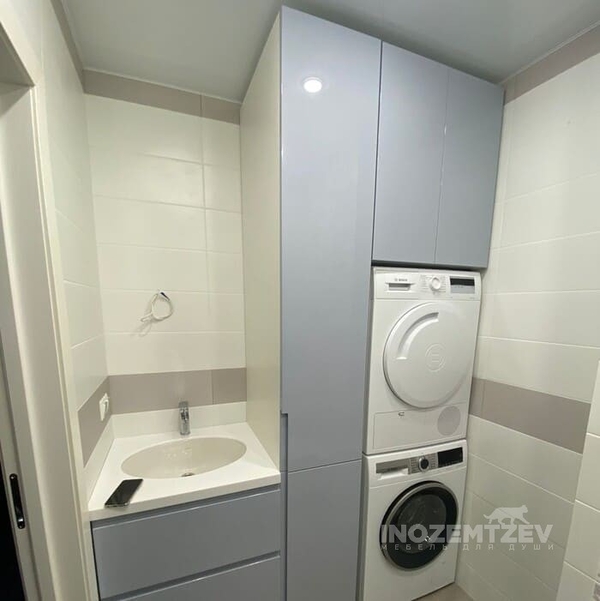 Длинный шкаф под стиральную машину и бойлер из МДФ эмали