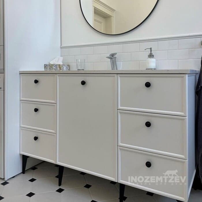 Комплекс в ванную комнату из МДФ эмали: шкаф для стиральной машины и тумба с выдвижными ящиками