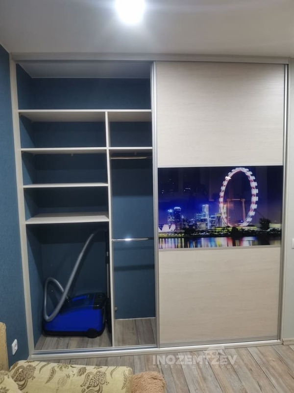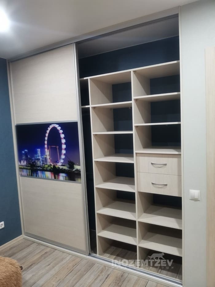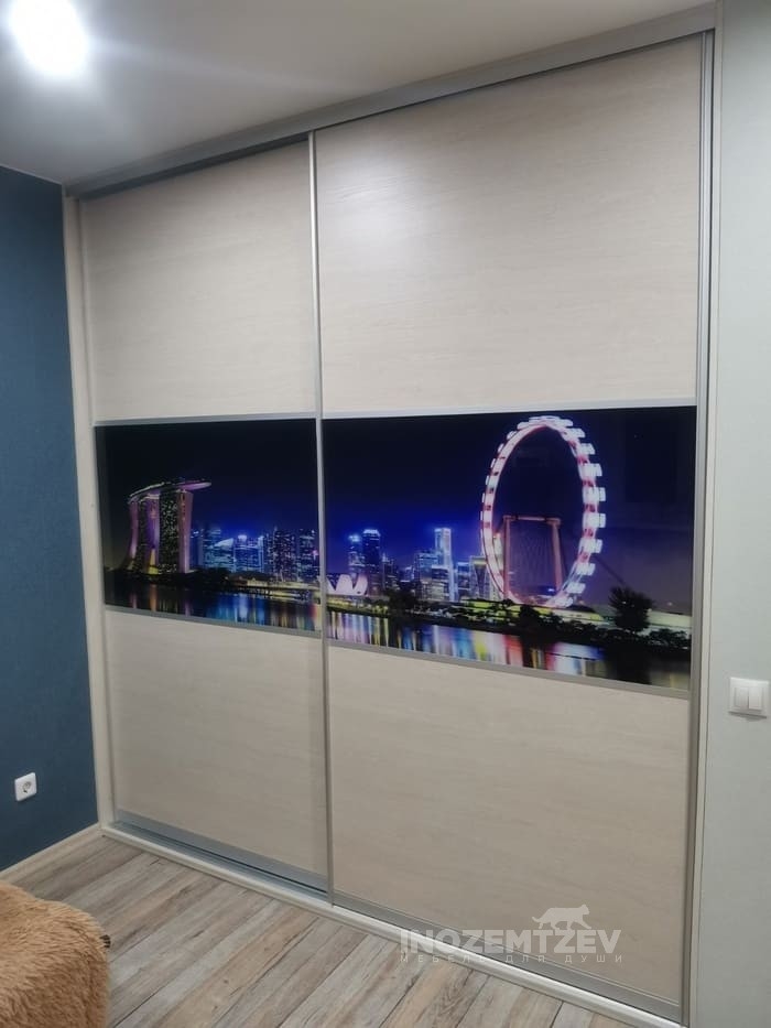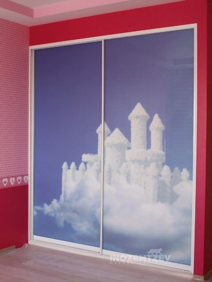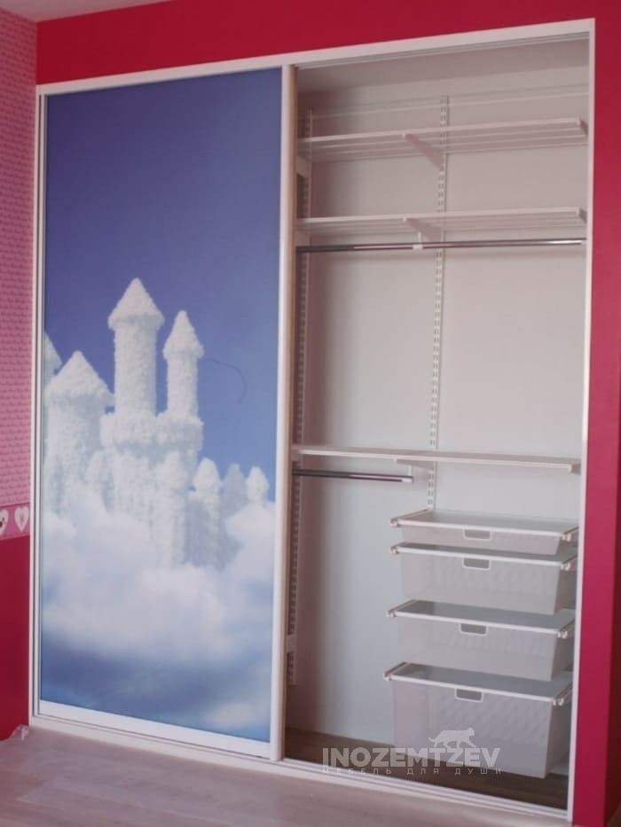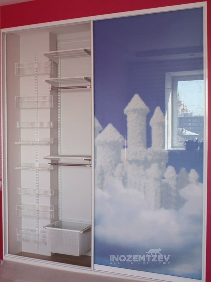 Встроенный детский шкаф купе для двоихиз ЛДСП Egger с фотопечатью