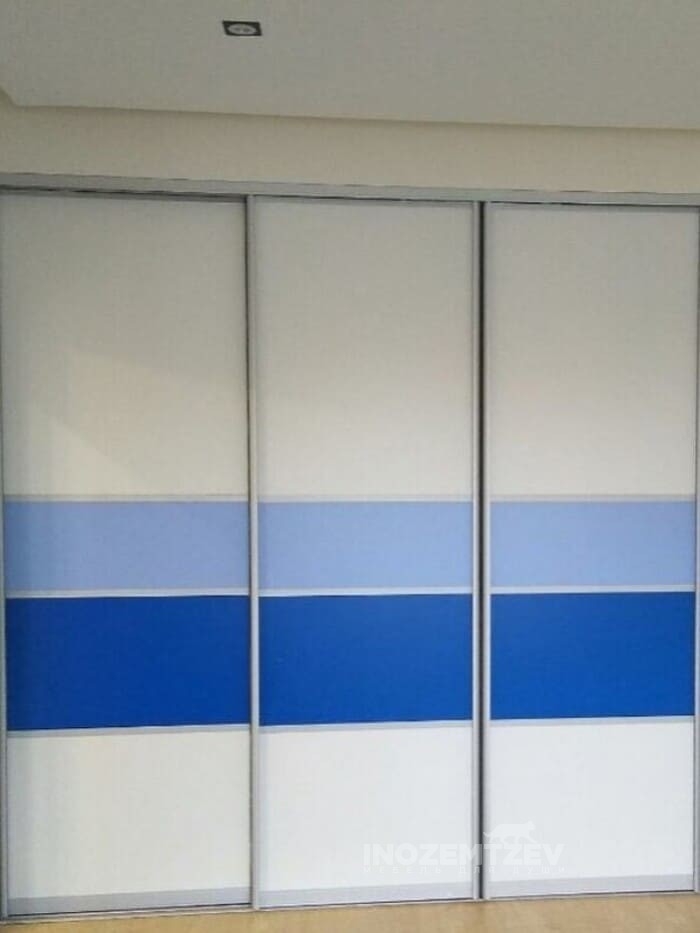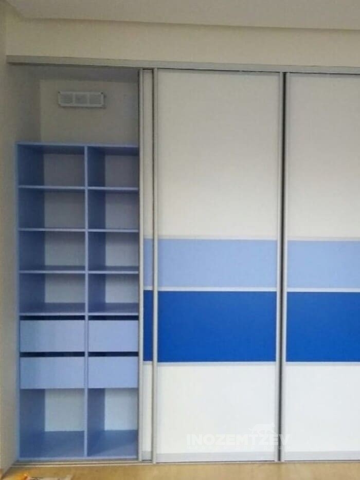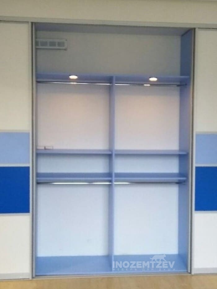 Шкаф купе в комнату мальчика с голубыми и синими вставками