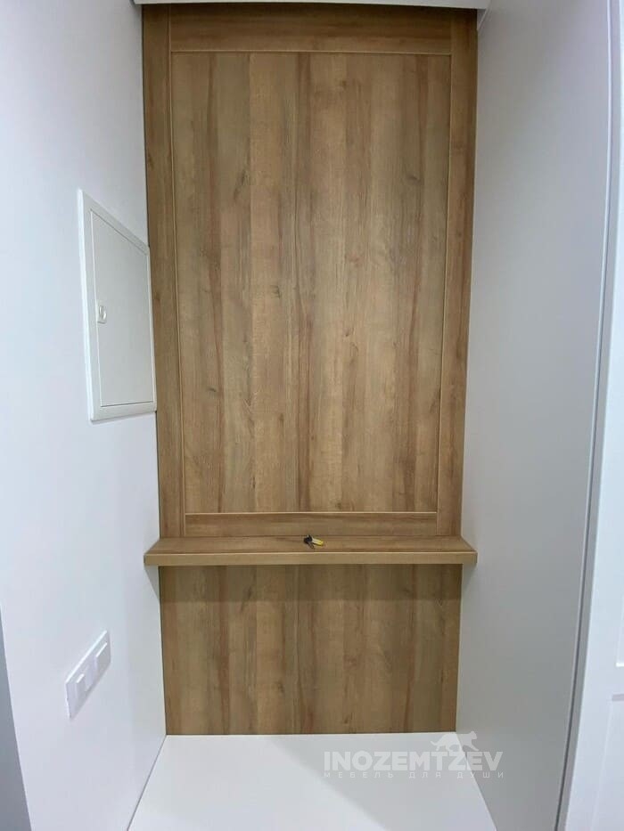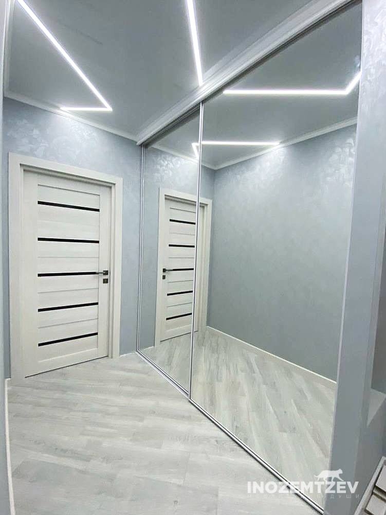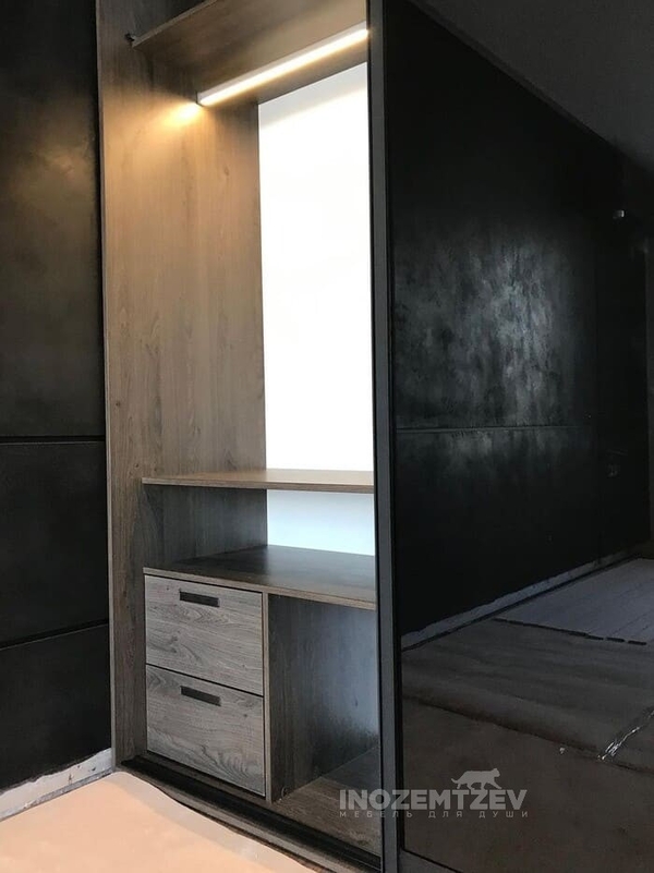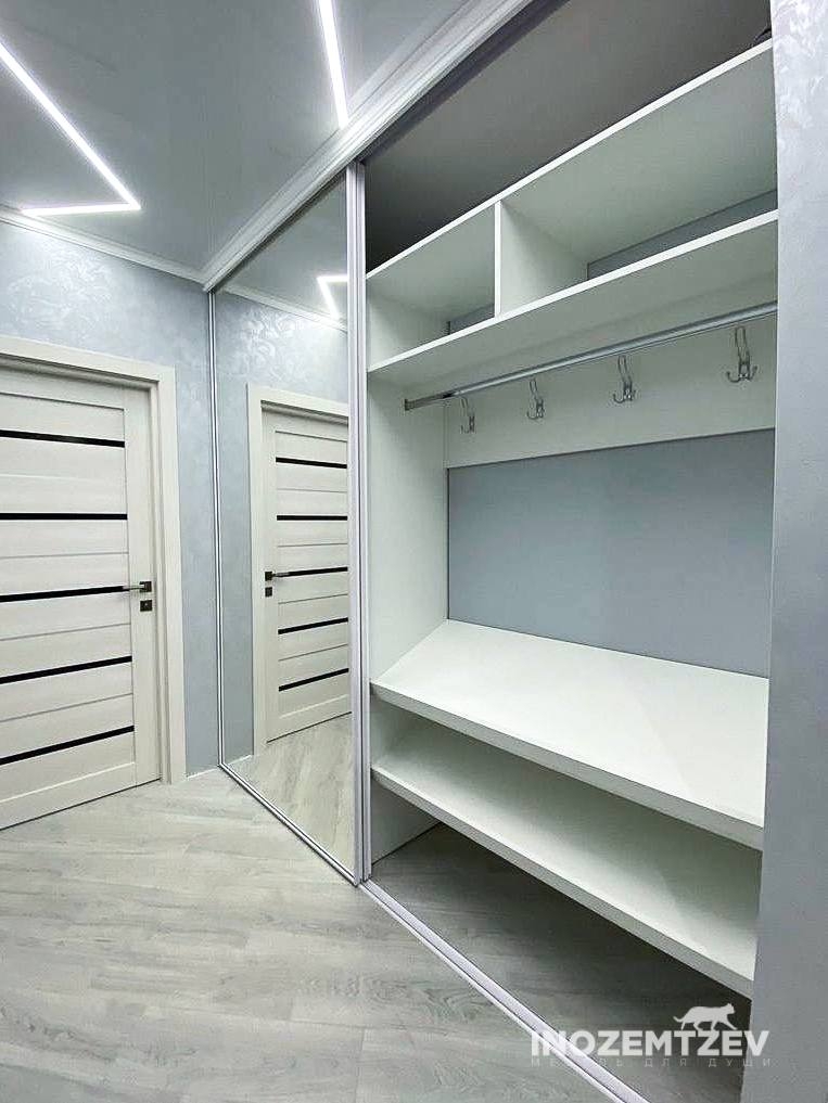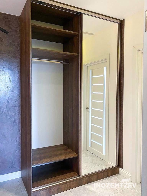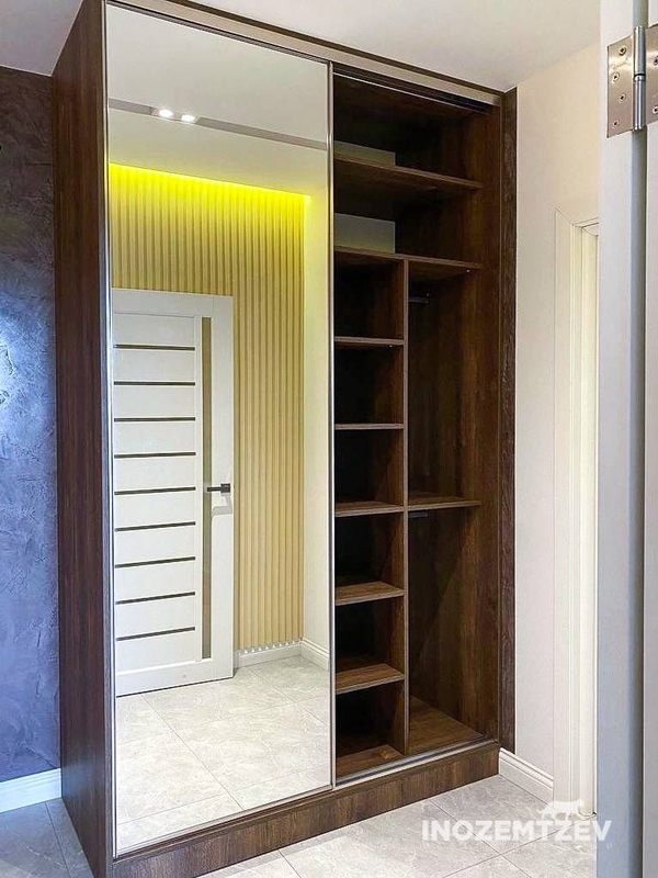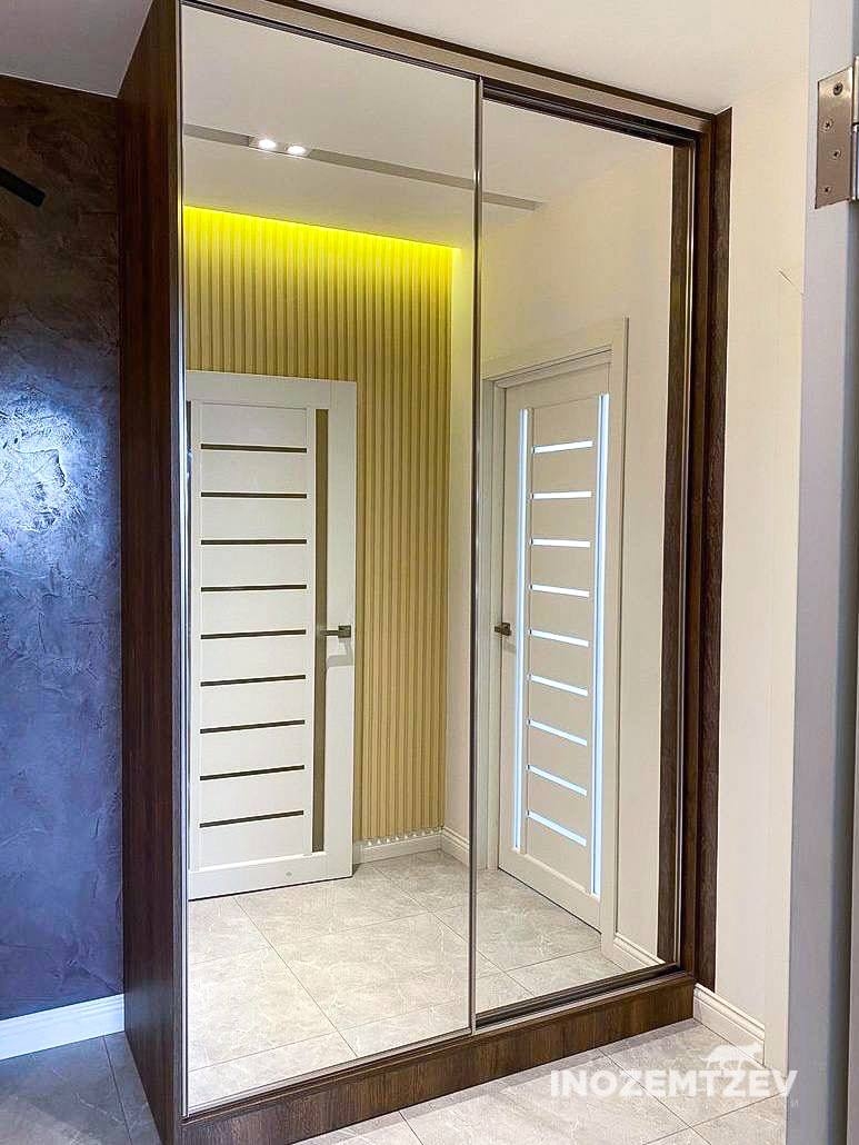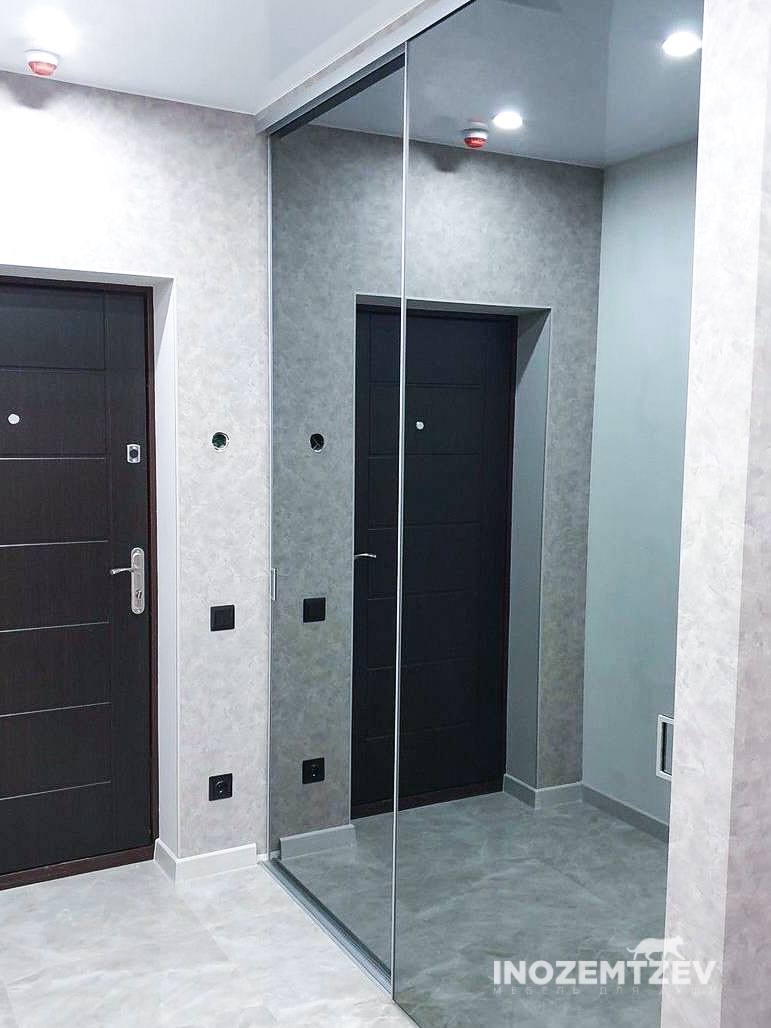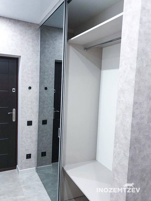Зеркальный шкаф с раздвижными дверями, встроенный в нишу прихожей, корпус выполнен из ЛДСП Egger
