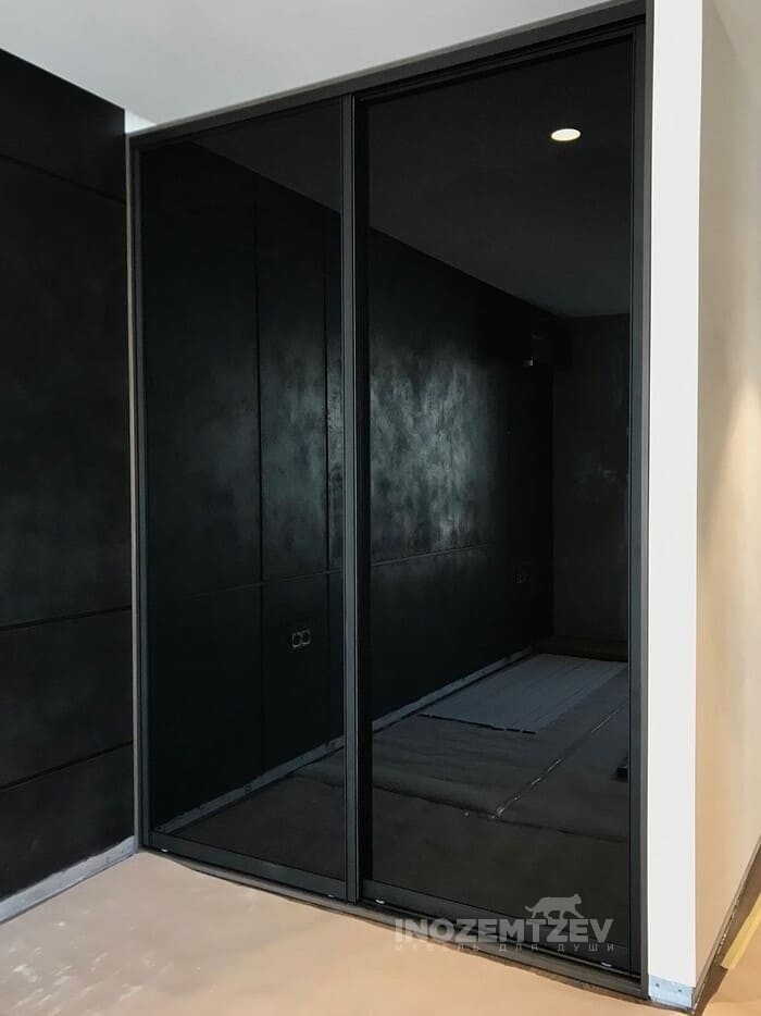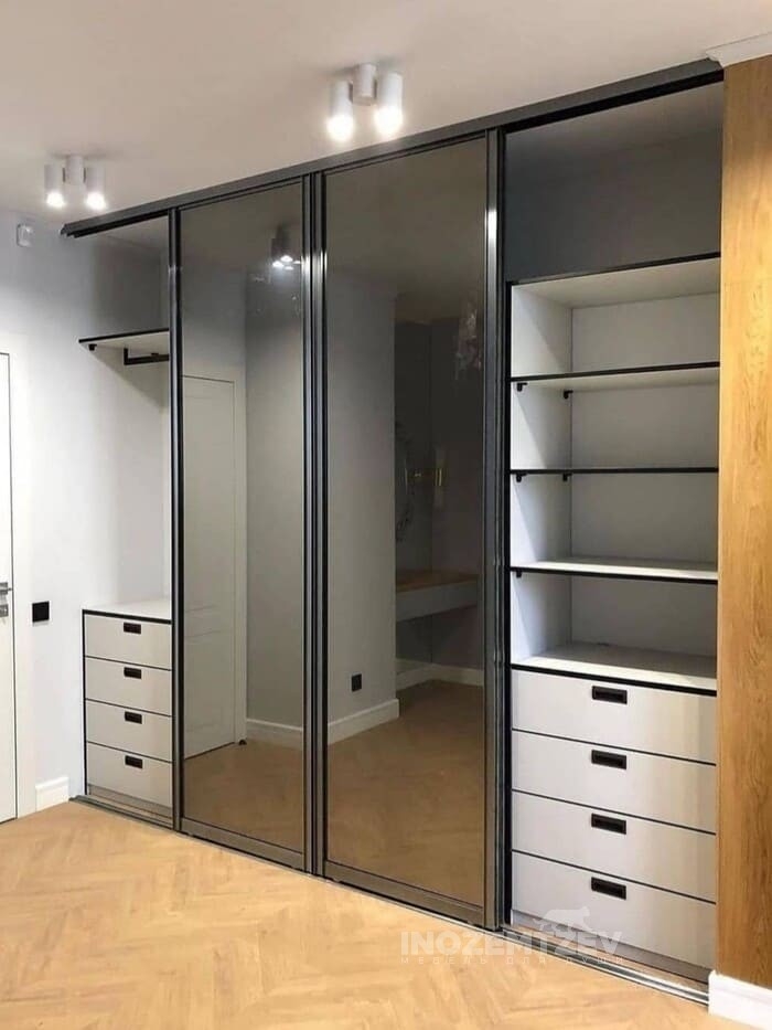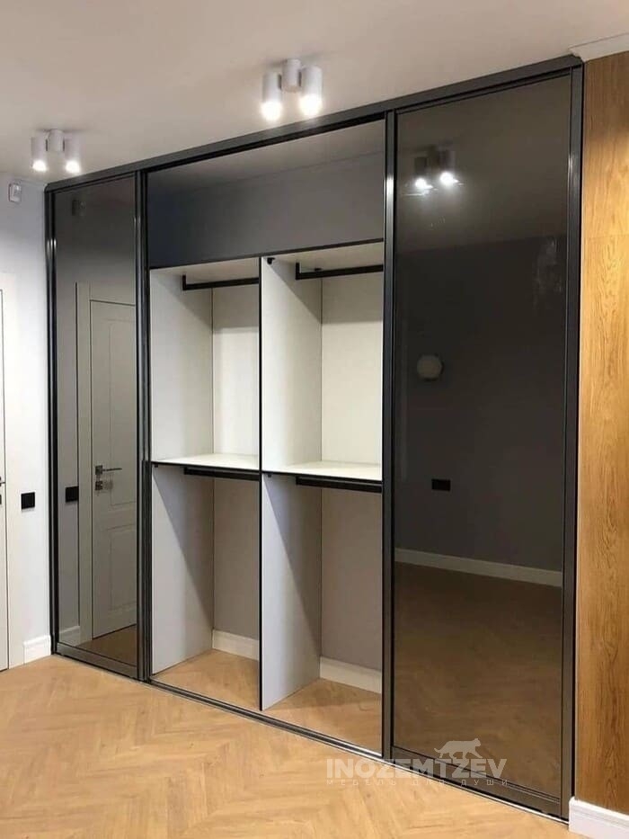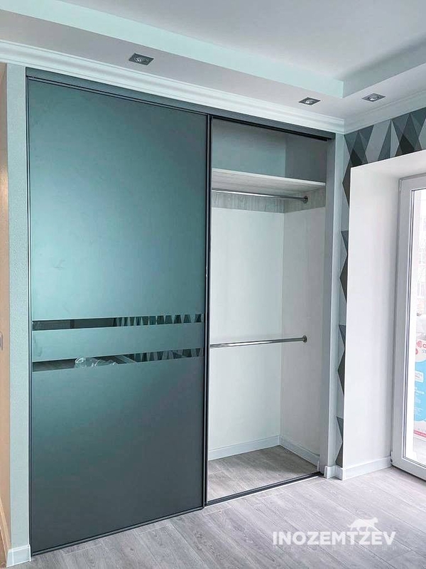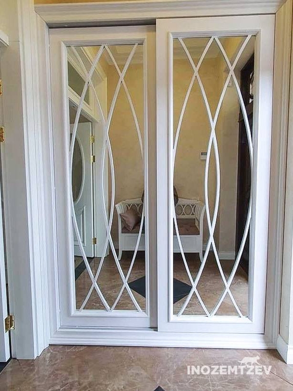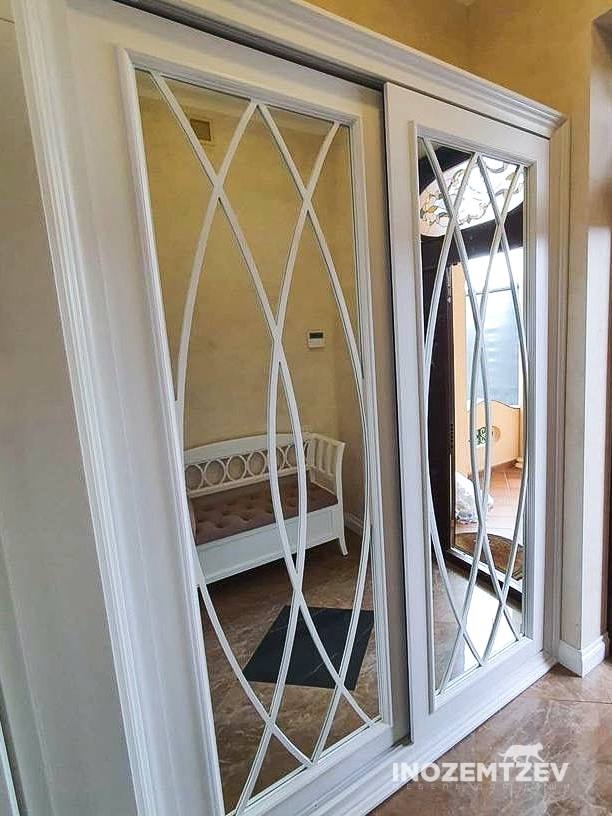 Встроенный шкаф купе с зеркальными дверями с пескоструной обработкой