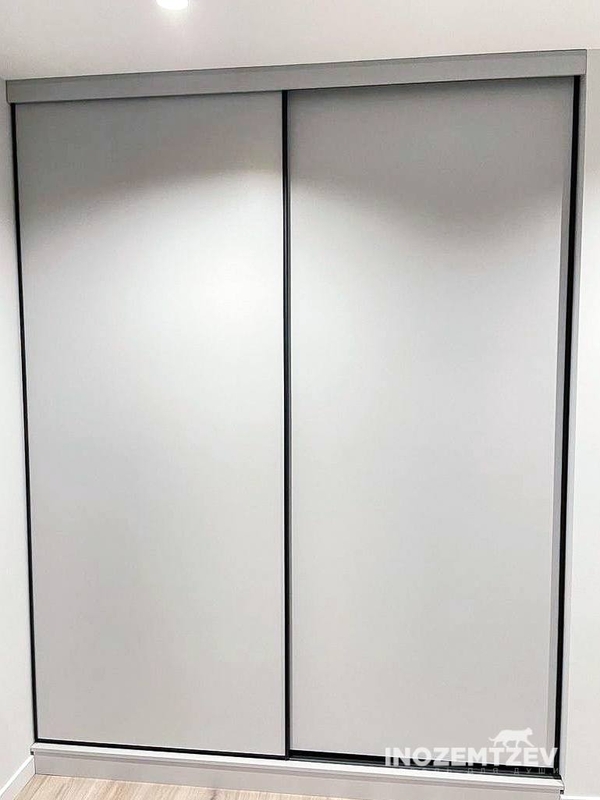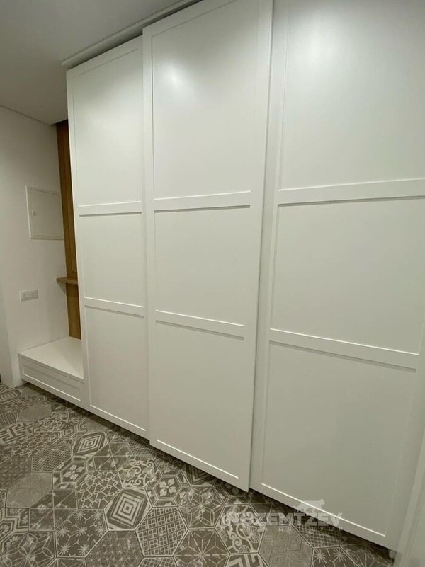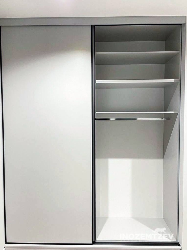 Парящий белый шкаф купе в прихожую с фасадами из рамочного крашенного МДФ