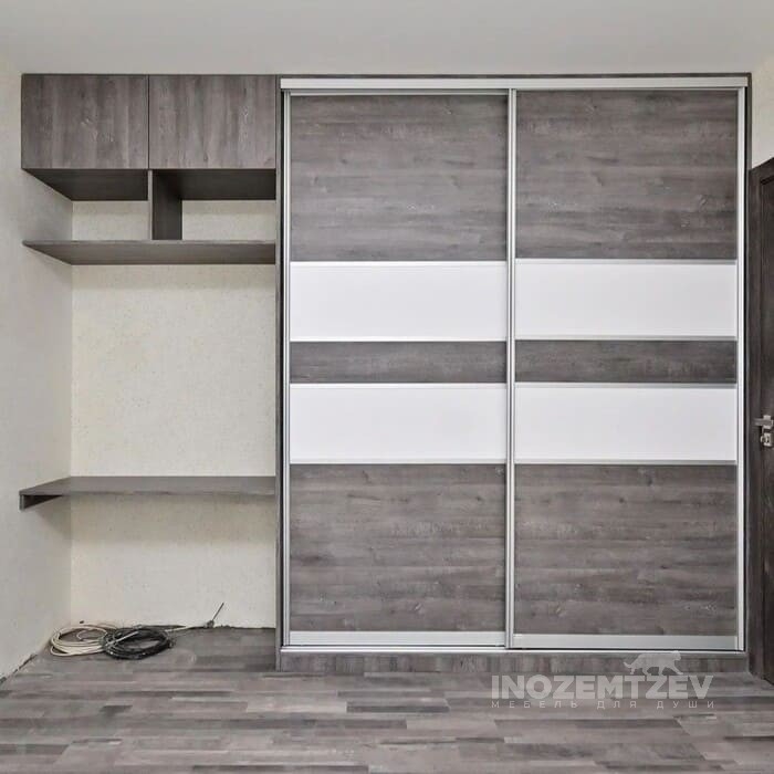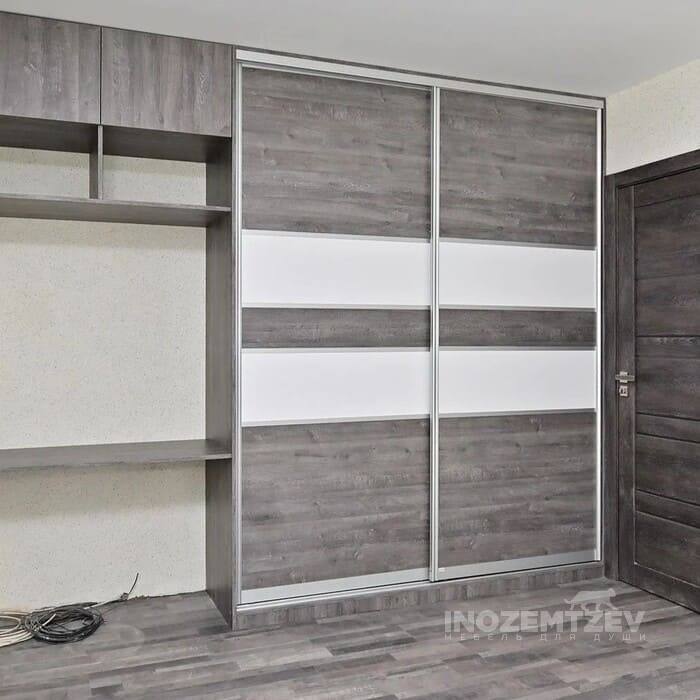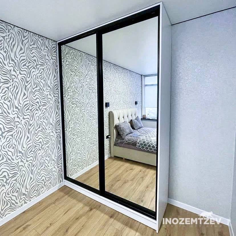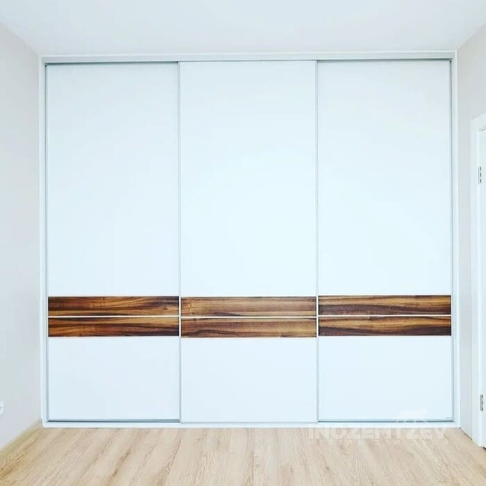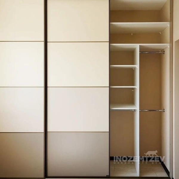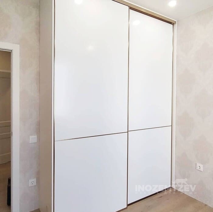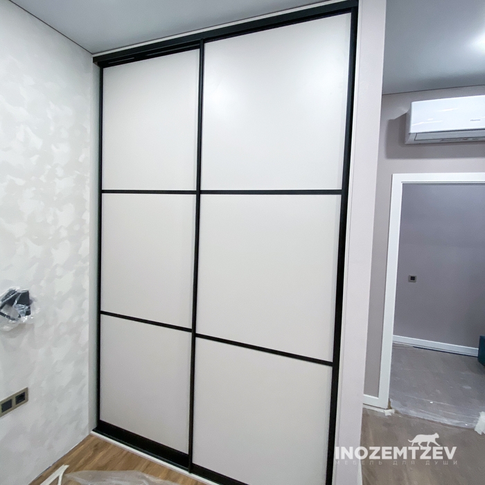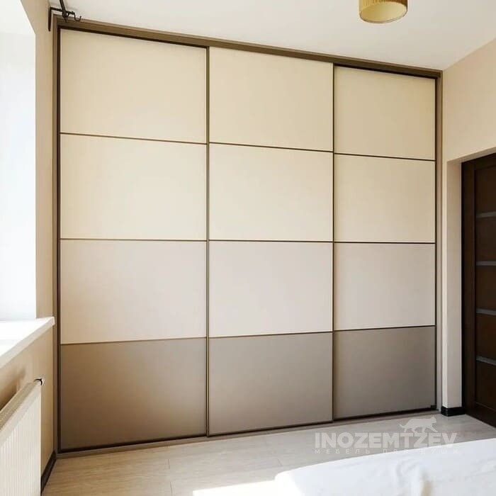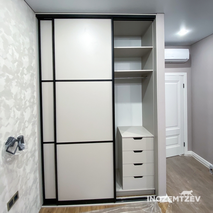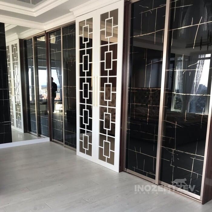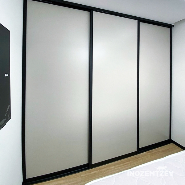 Встроенный шкаф купе в спальню из алюминиевого профиля с МДФ вставками