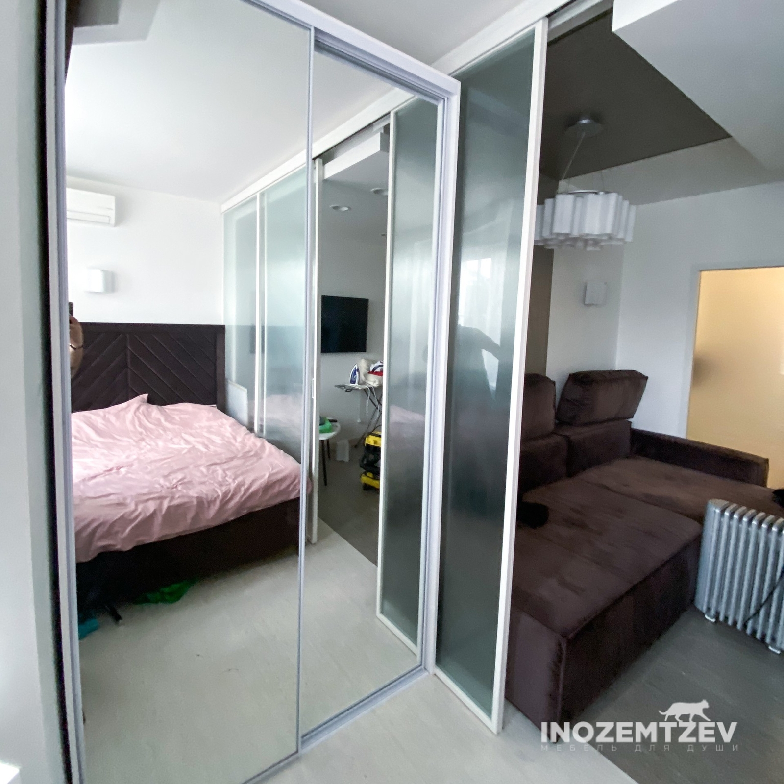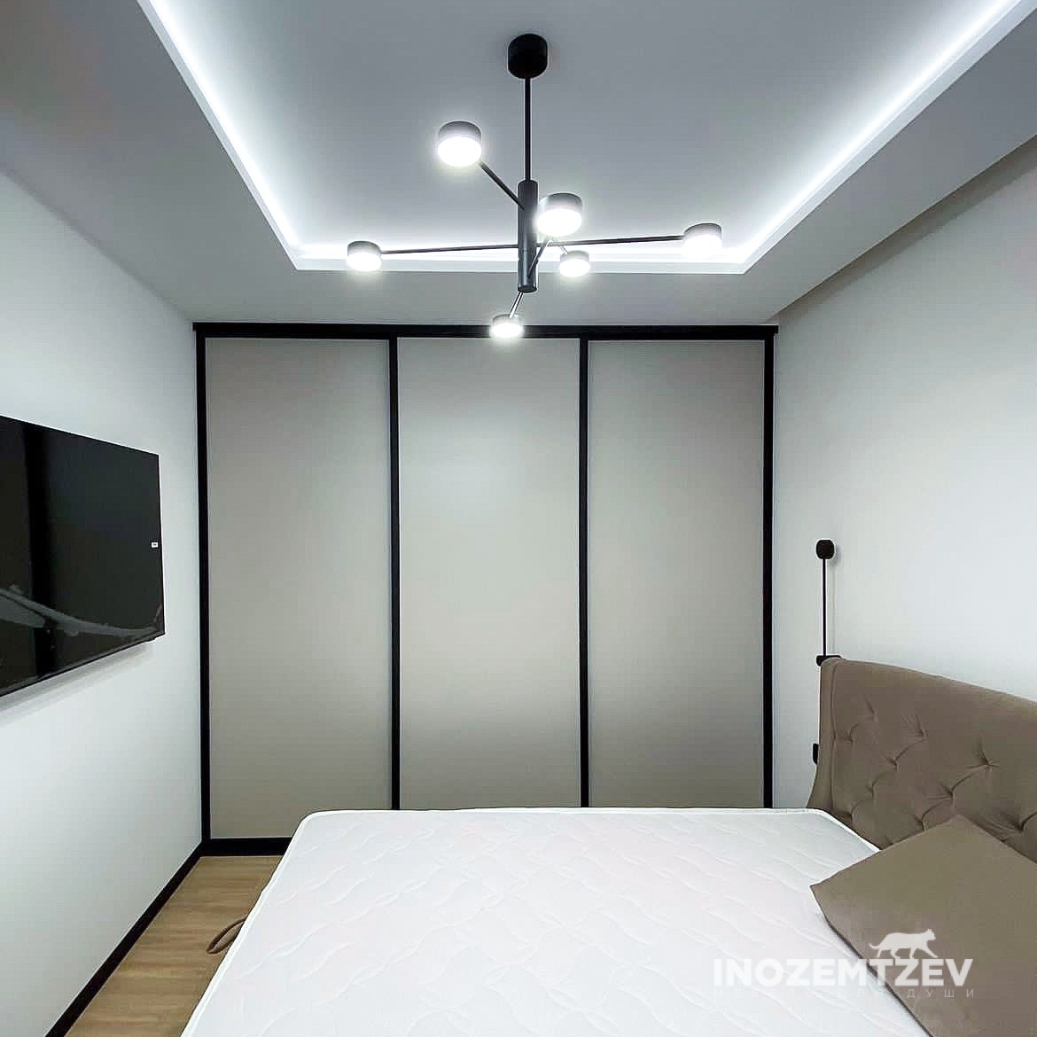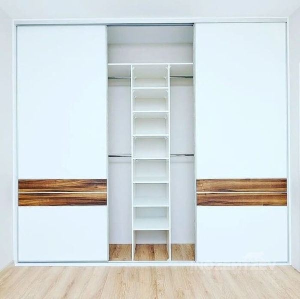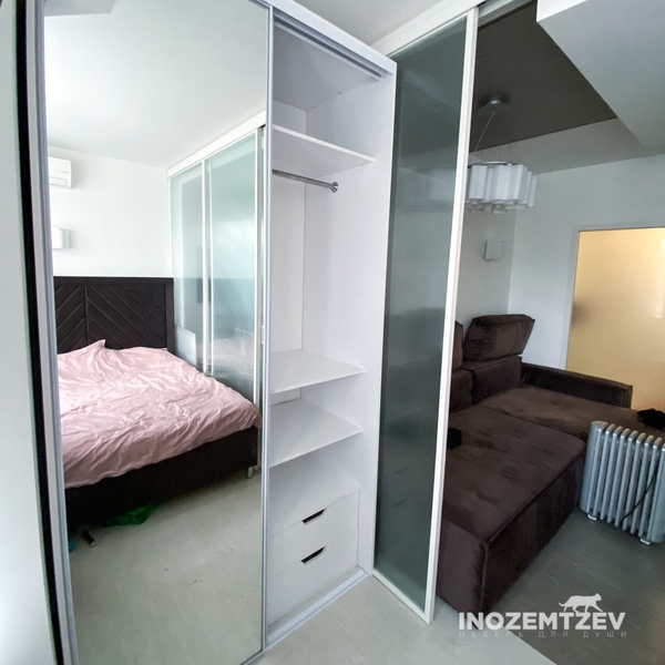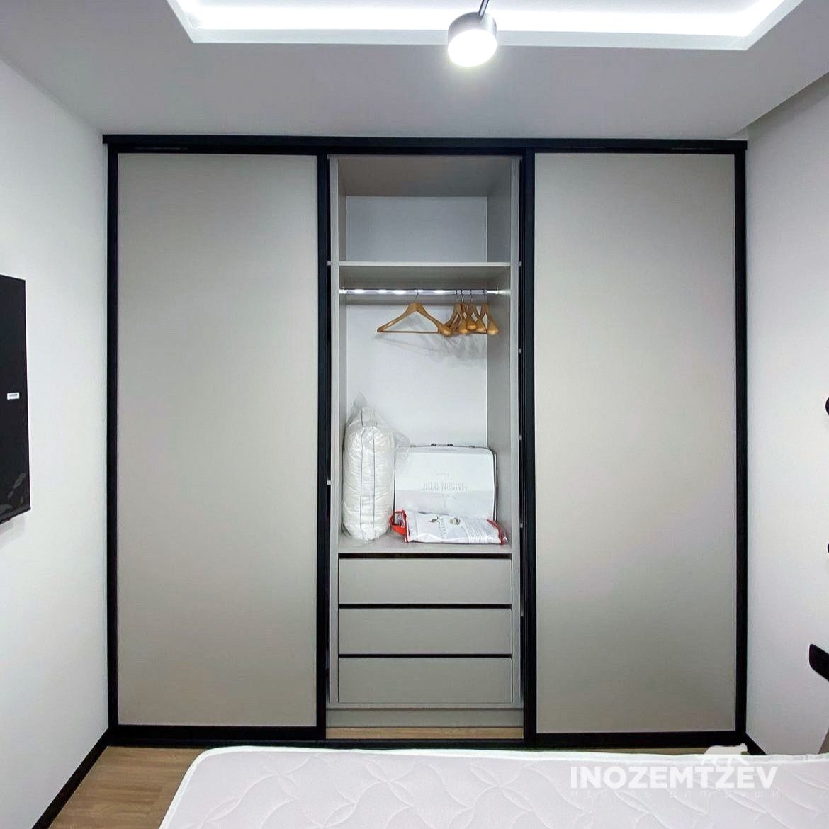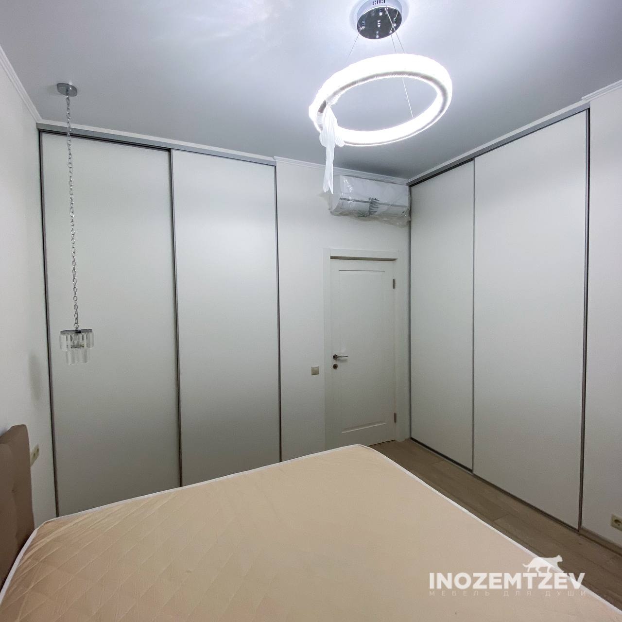 Встроенный шкаф купе в спальню из алюминиевого профиля с МДФ вставками