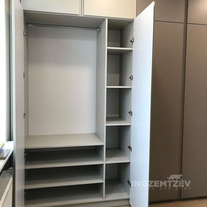 Трехстворчатый шкаф купе в спальню в современном стиле с разделителями из ЛДСП Egger как фасадная, так и внутренняя часть