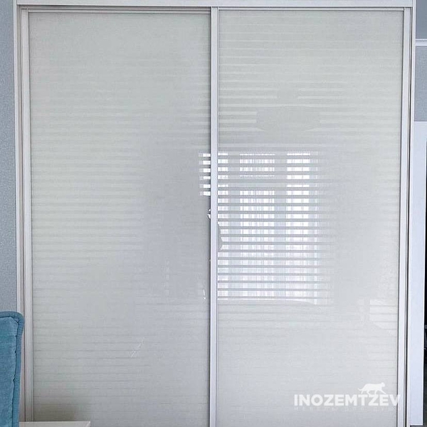 Шкаф купе в спальню без зеркала со вставками из цветных стекол Lacobel
