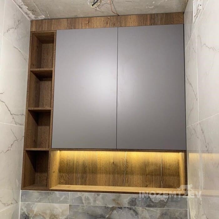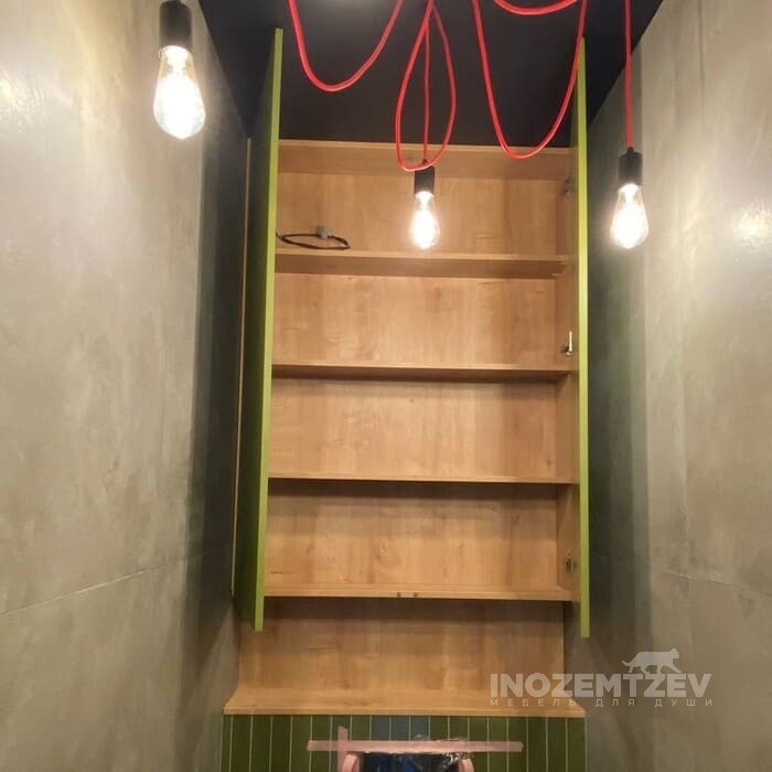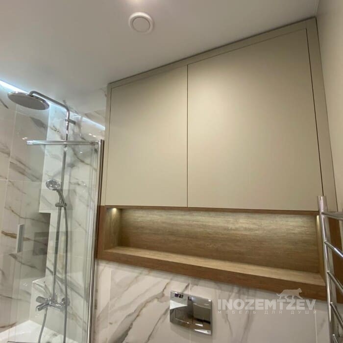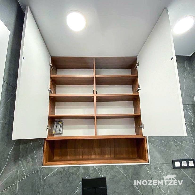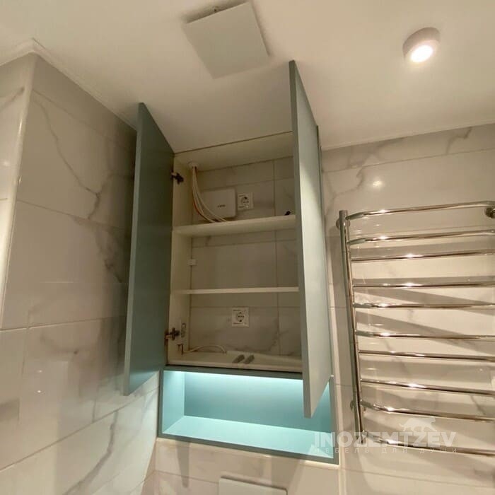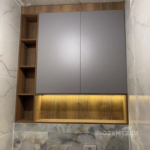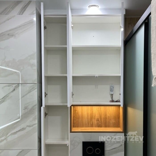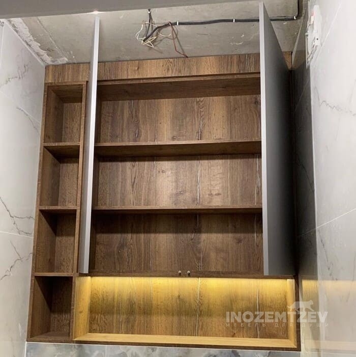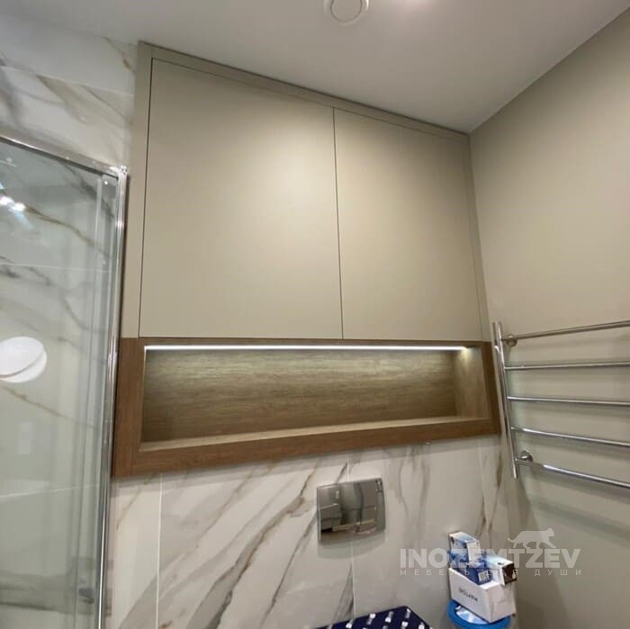 Шкаф над инсталляцией с подсветкой с открытой полкой