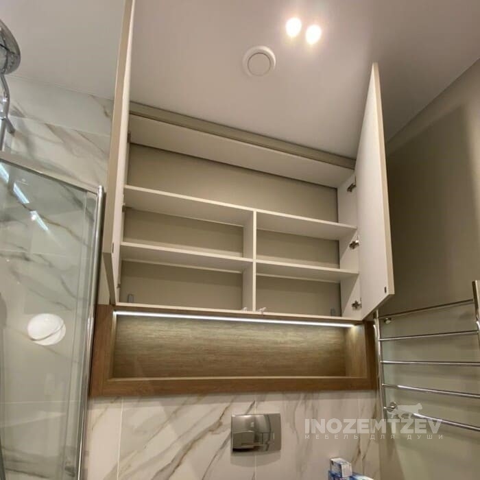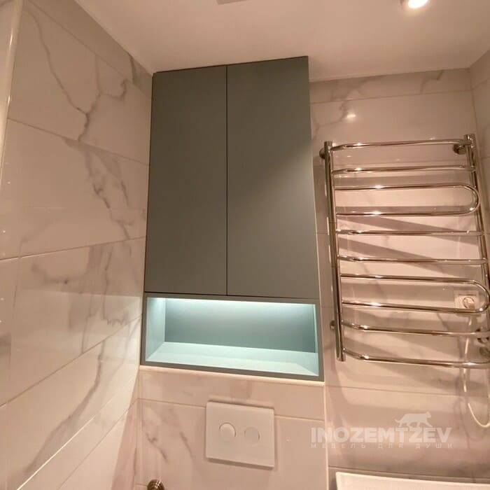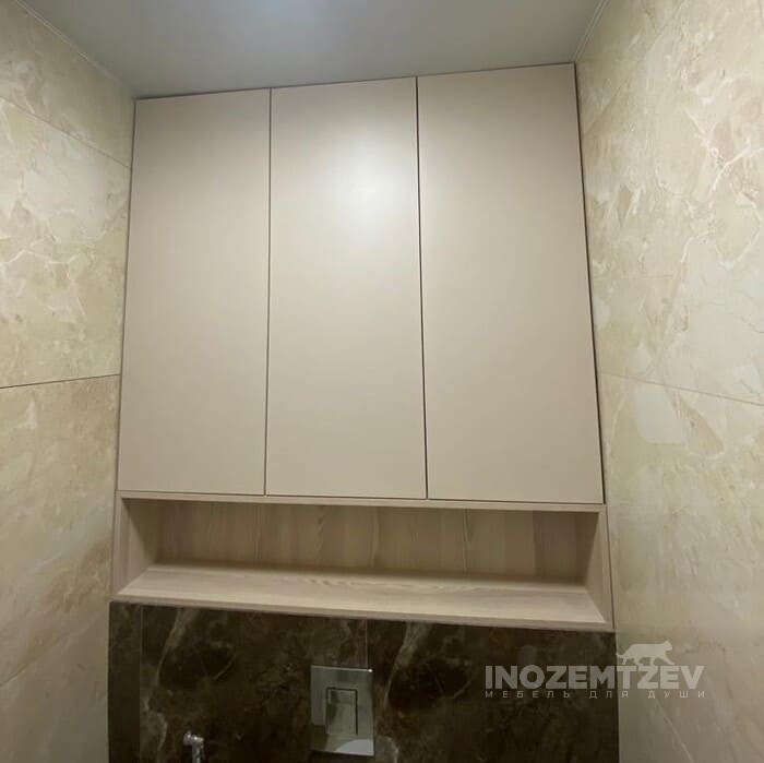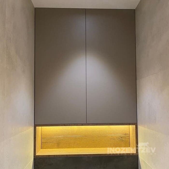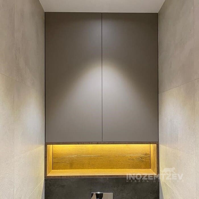 Шкафчик над инсталляцией с теплой подсветкой с нажимным открыванием