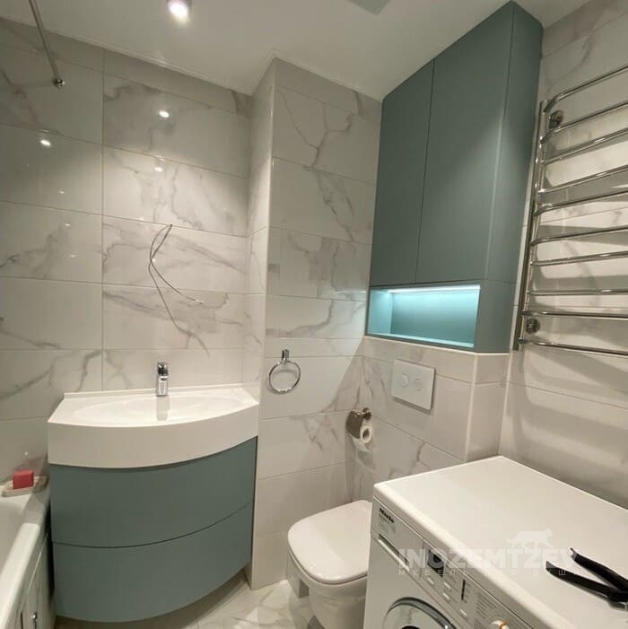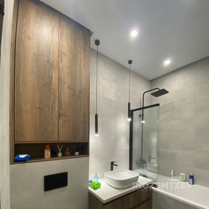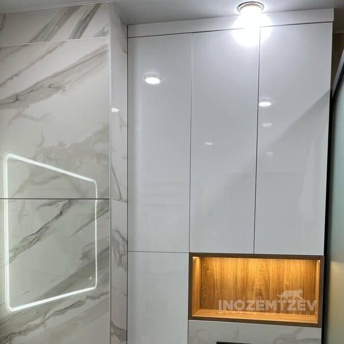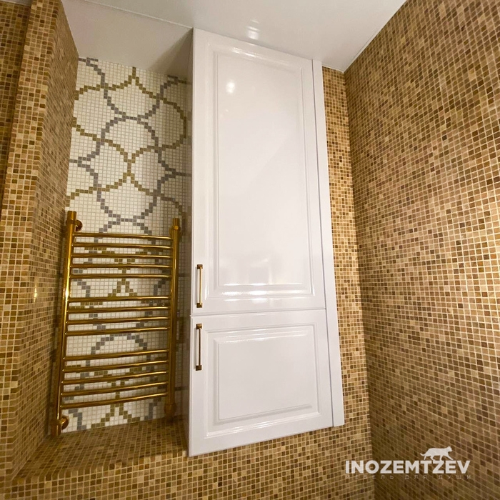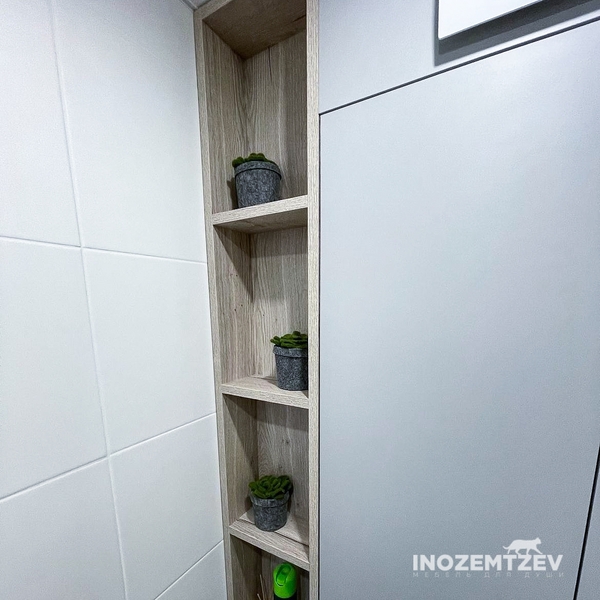 Шкаф в нишу и небольшая тумба под раковину в ванную комнату