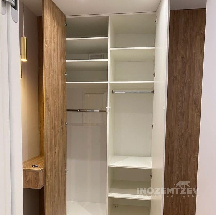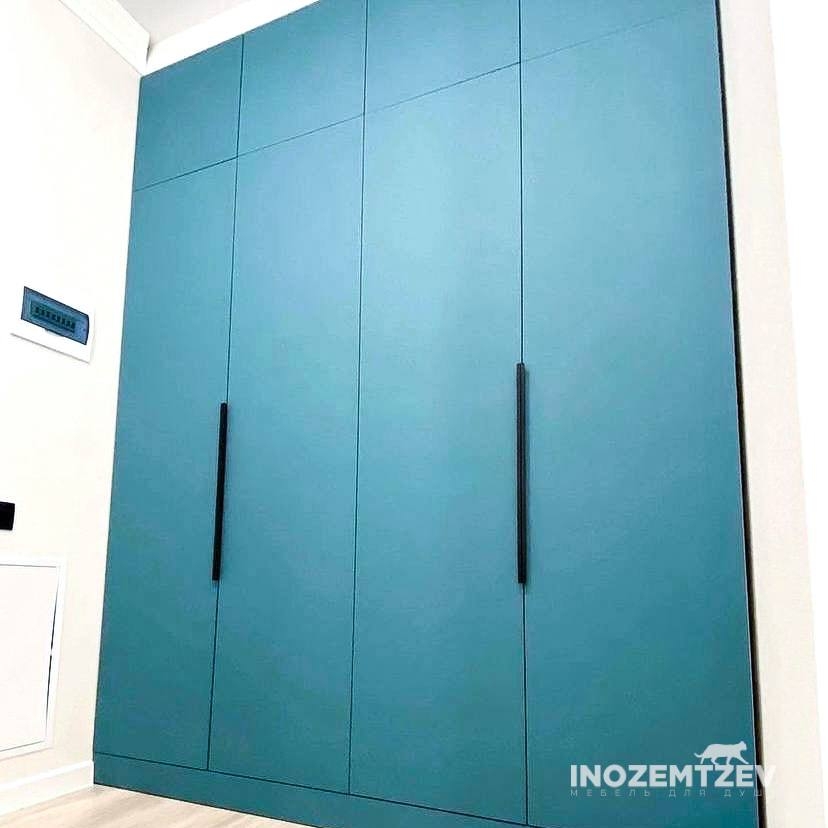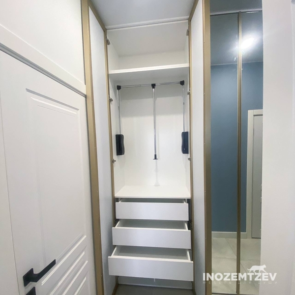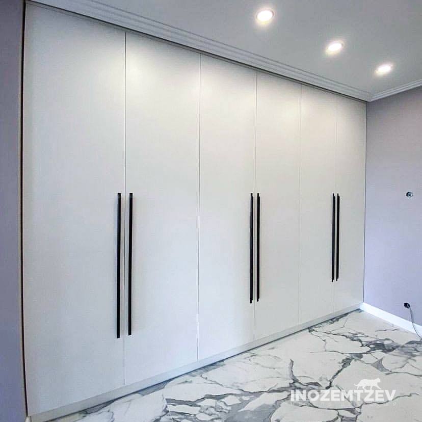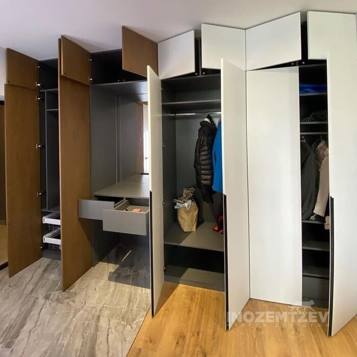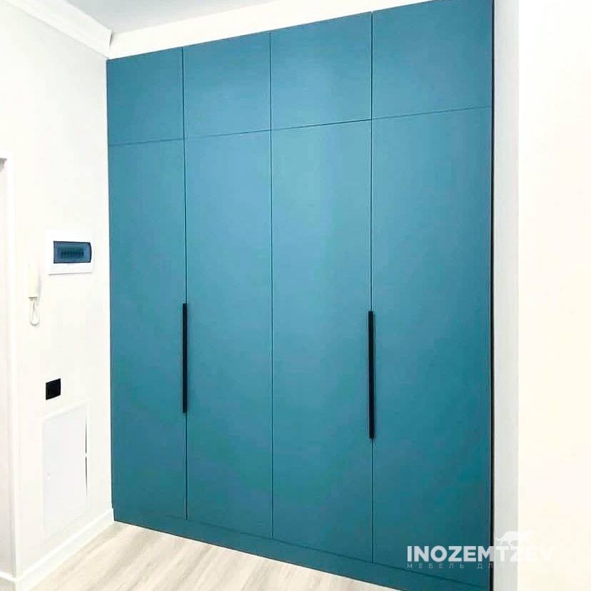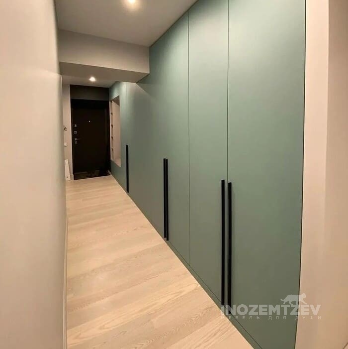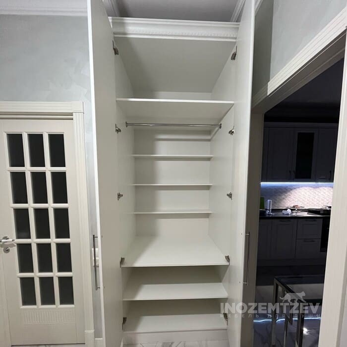 Встроенный распашной шкаф в прихожую из экологичного, долговечного и устойчивого к царапинам МДФ эмали, надежная фурнитура Blum