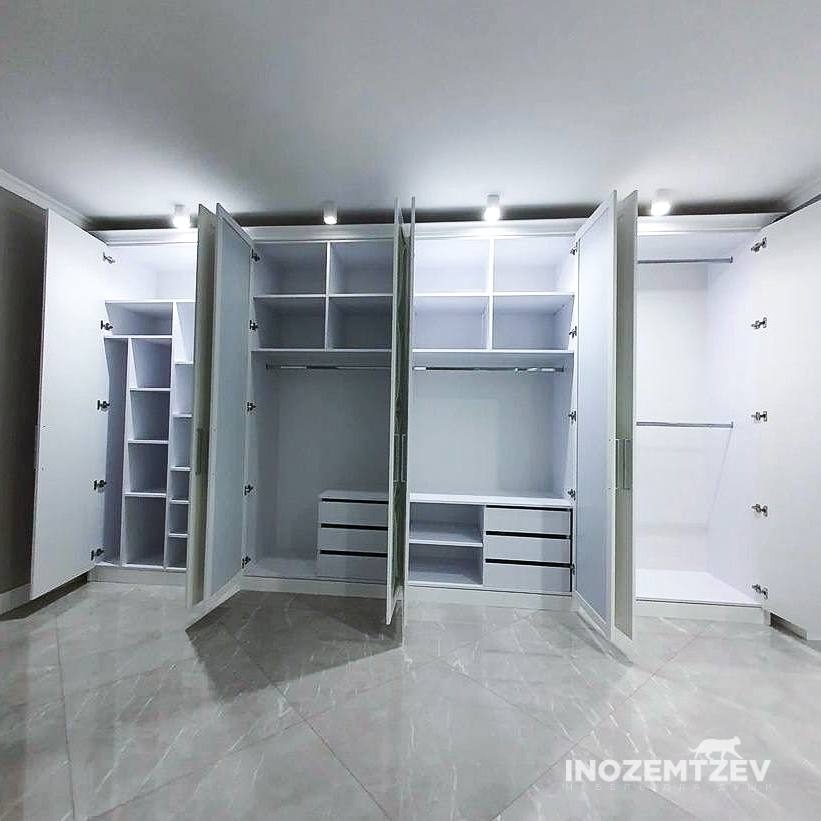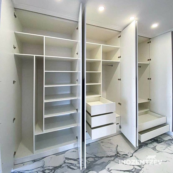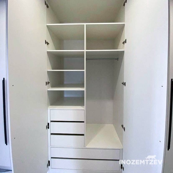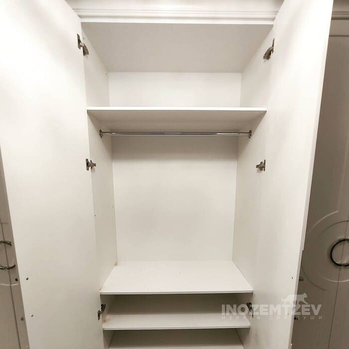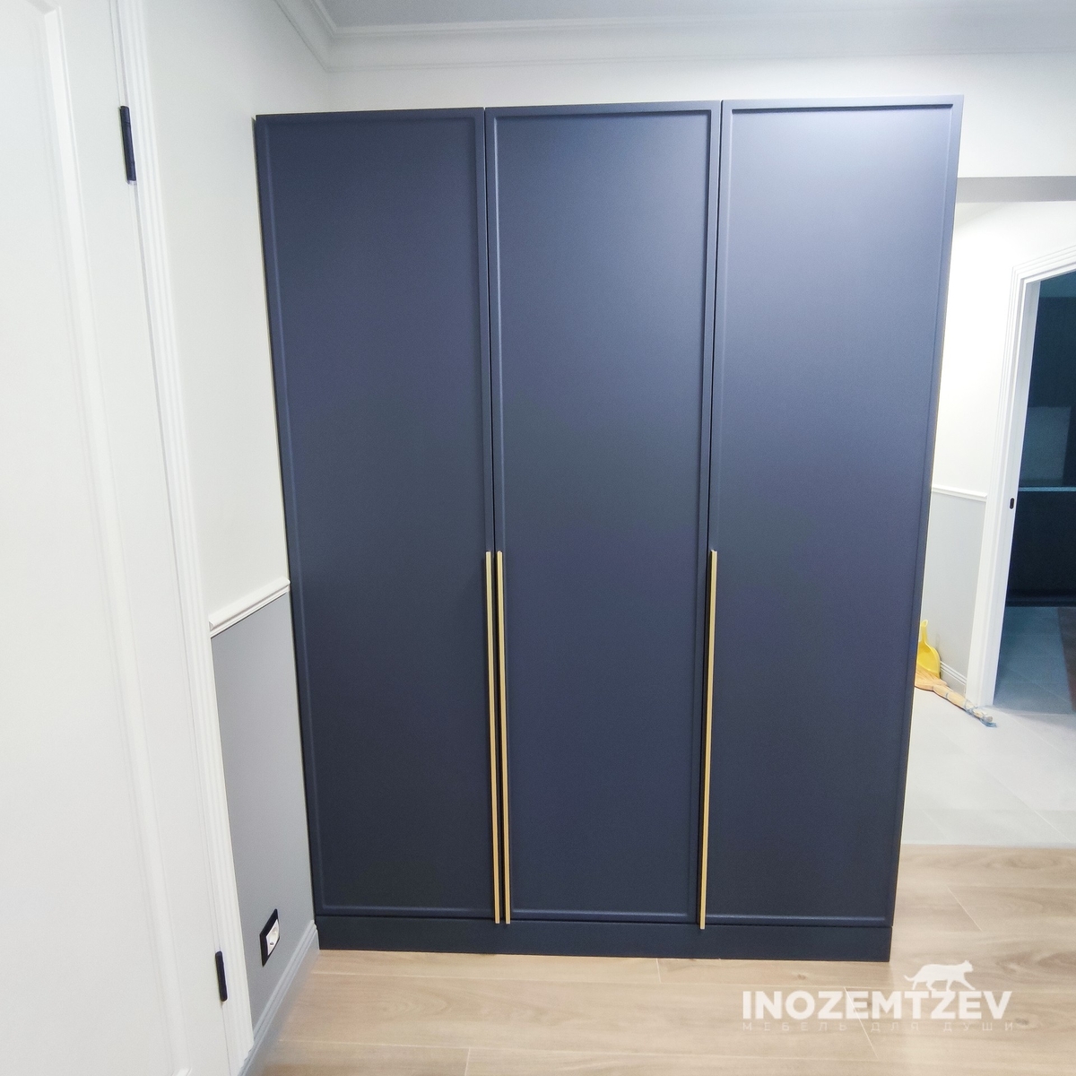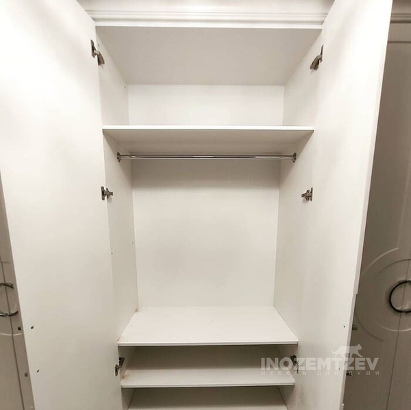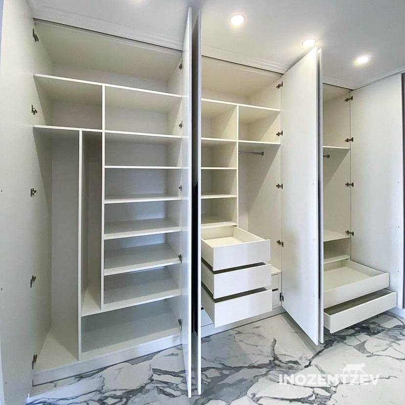 Встроенный распашной шкаф в прихожую из экологичного, долговечного и устойчивого к царапинам МДФ эмали, надежная фурнитура Blum