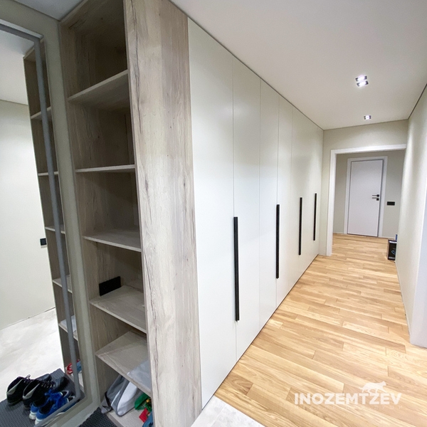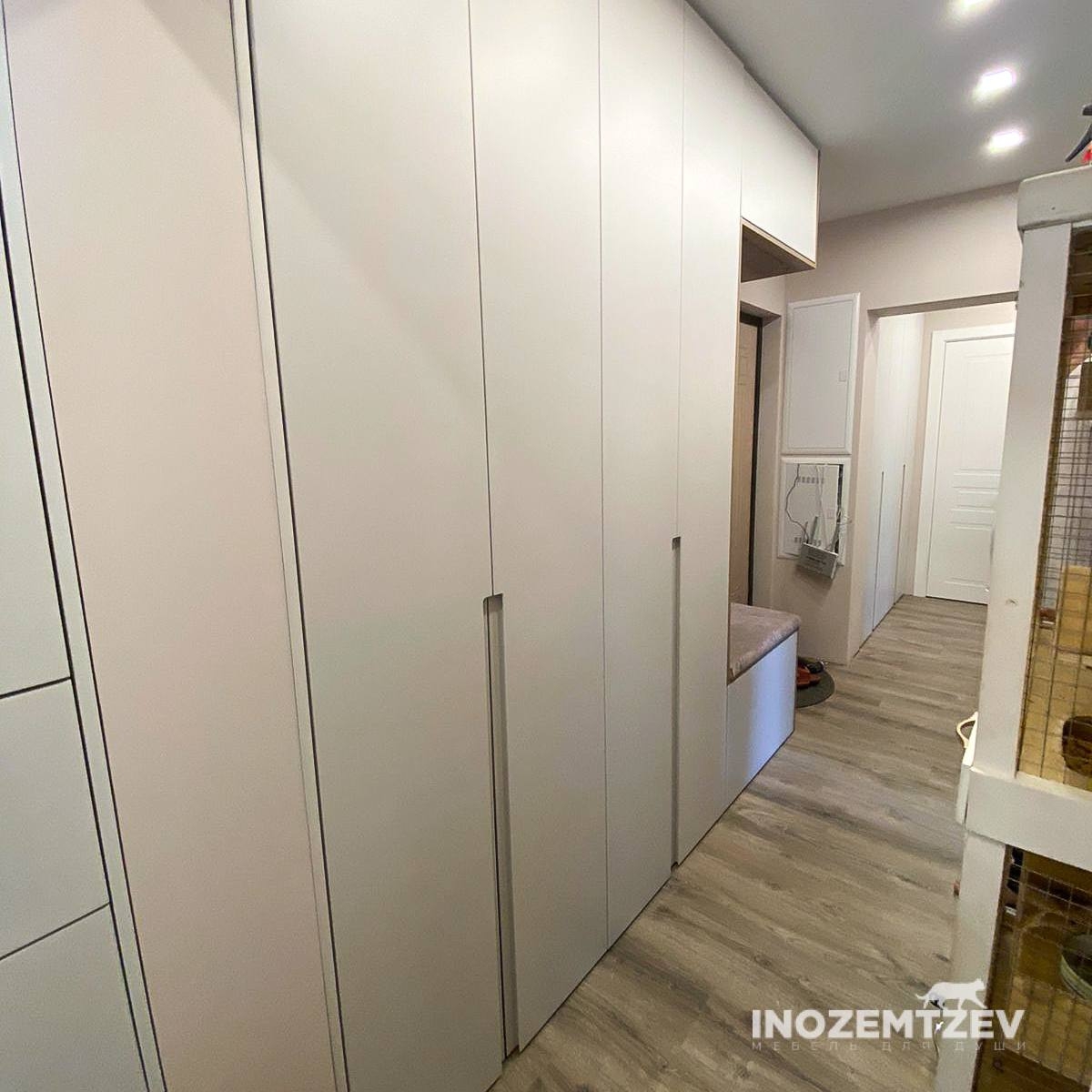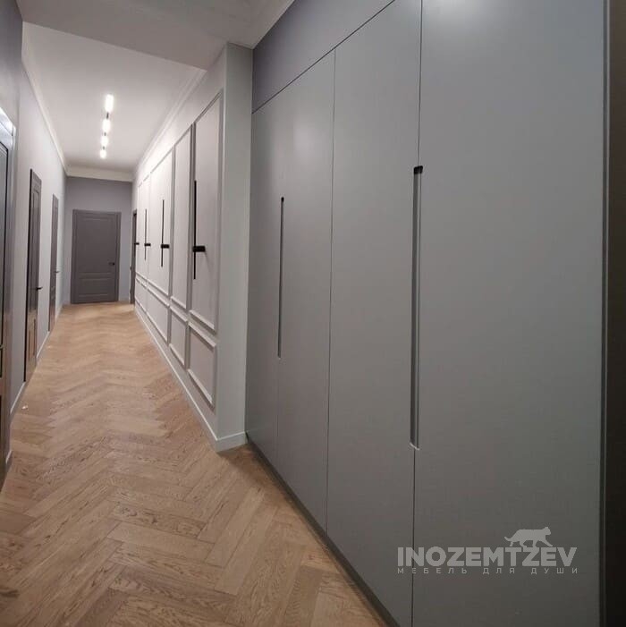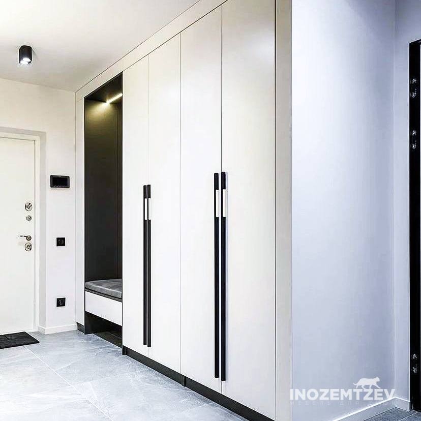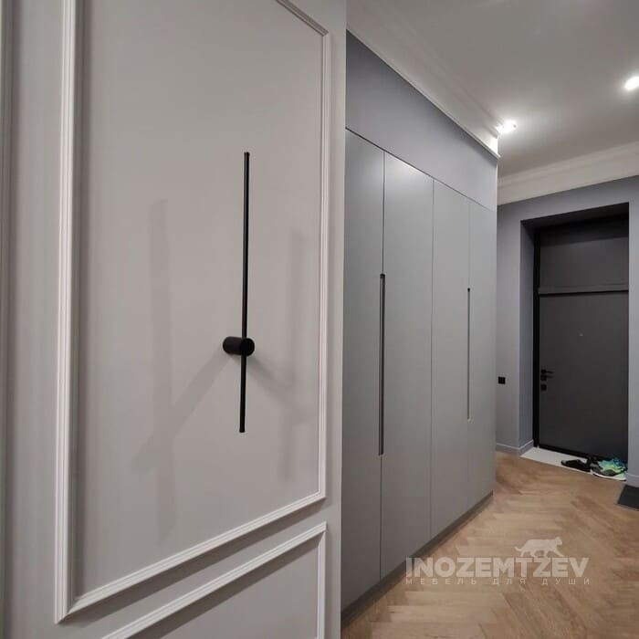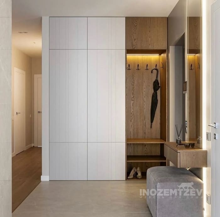 Встроенный шкаф в прихожую в современном стиле с интегрированными ручками и внутренней подсветкой
