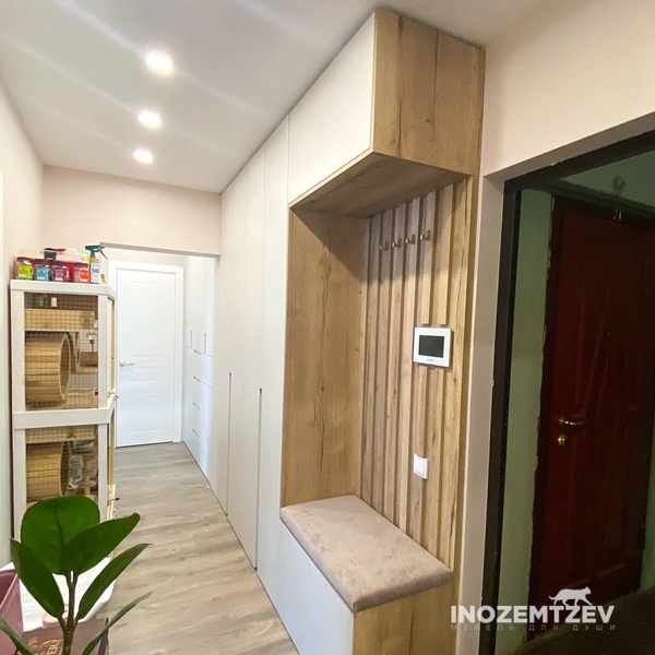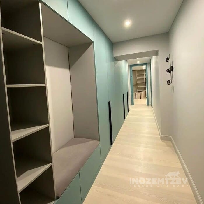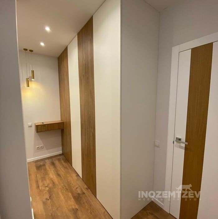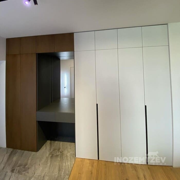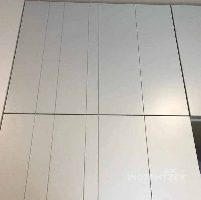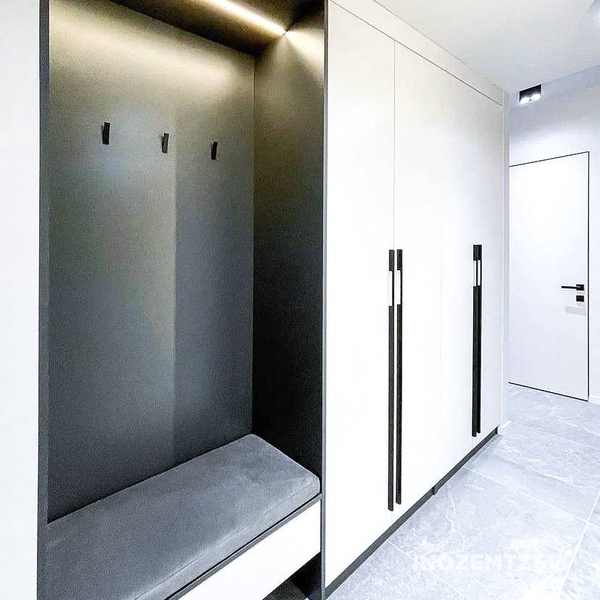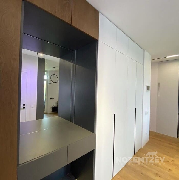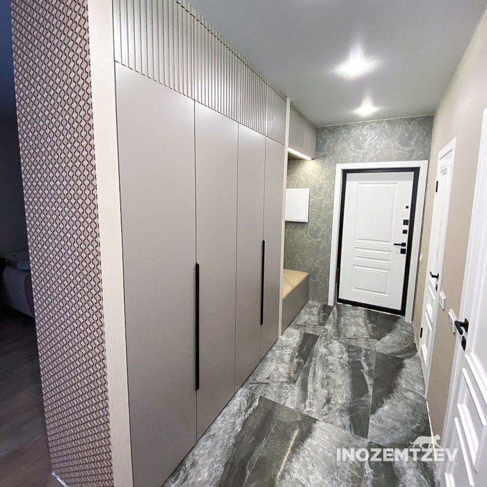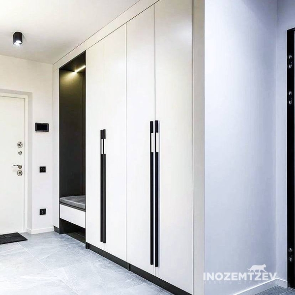 Встроенный шкаф в прихожую в современном стиле с интегрированными ручками и внутренней подсветкой