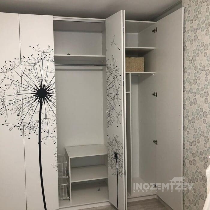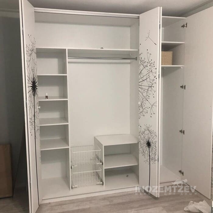 Шкаф гармошка с фотопечатью на дверях с выдвижными корзинами для белья и нишей для гладильной доски