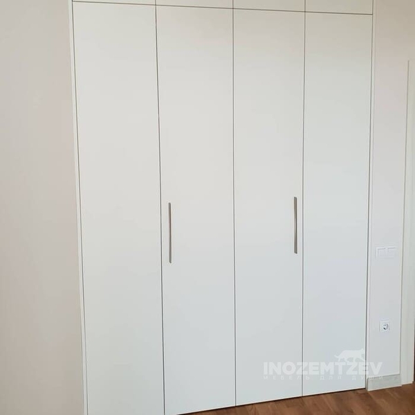 Шкаф гармошка из МДФ в пленке ПВХ с легкой фрезеровкой по периметру и двумя пантографами для вещей