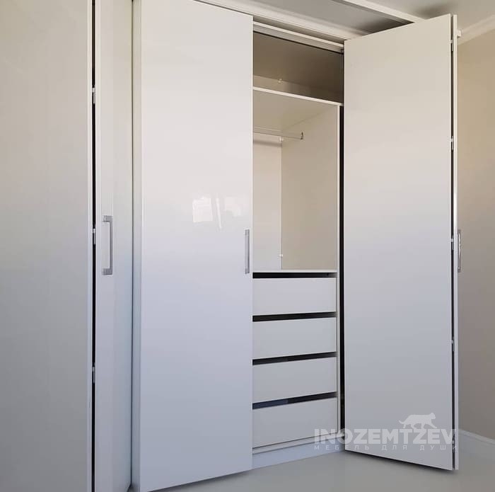 Складной шкаф гармошка с нажимным октрыванием в двух цветовых решениях