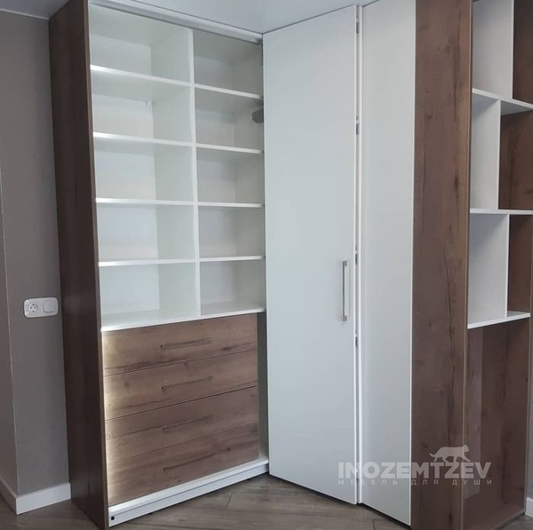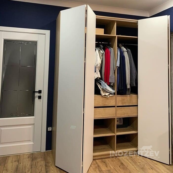 Угловой шкаф со складными дверями и внутренней подсветкой