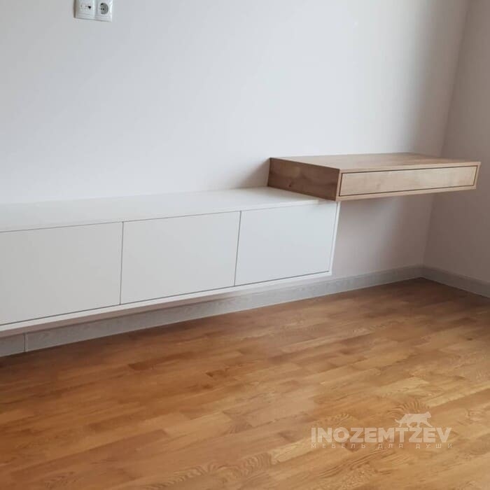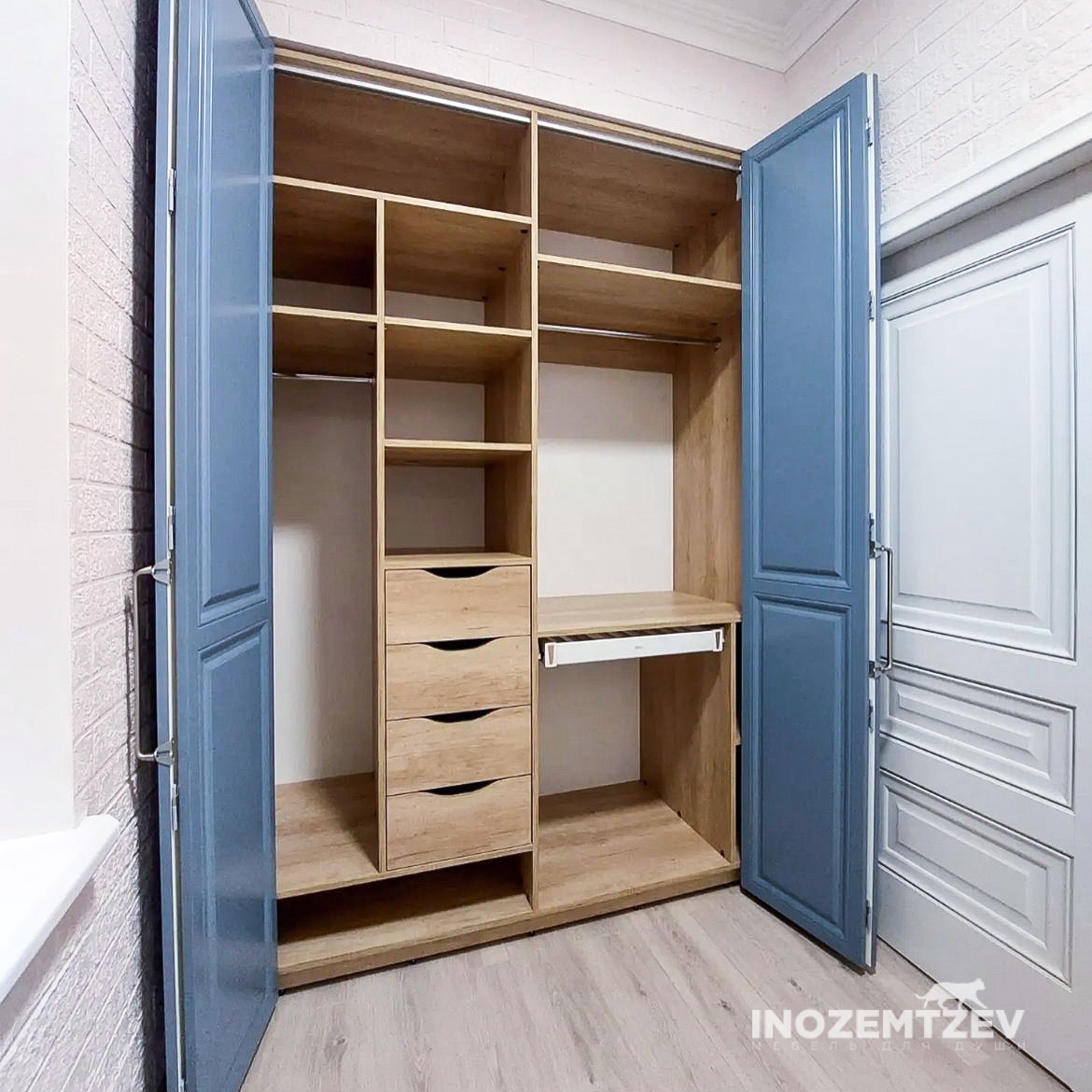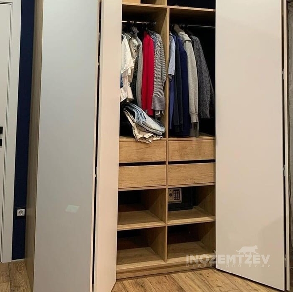 Гардеробная со складными дверями и подвесная тумба из ЛДСП Egger