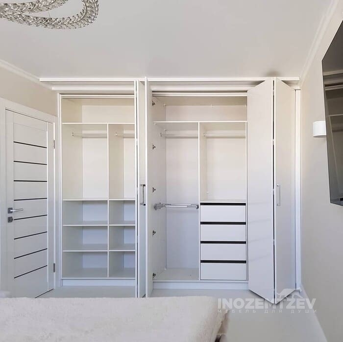 Шкаф в спальне является очень важным элементом, без которого проблематично обойтись. Именно это и объясняет изобилие моделей на современном рынке. В последнее время популярность обретают складные шкафы для одежды, а в дизайне все чаще используются монотонные оттенки, в последнее время очень популярными стали белые шкафы.Среди таких шкафов, существуют как каркасные, так и встроенные варианты, они могут быть выполнены в любой форме, но большей популярностью пользуются угловые и прямые шкафы. У нас вы можете заказать и купить любую модель шкафа со складывающимися дверями по собственным меркам и с планировкой внутреннего пространства исключительно под себя.